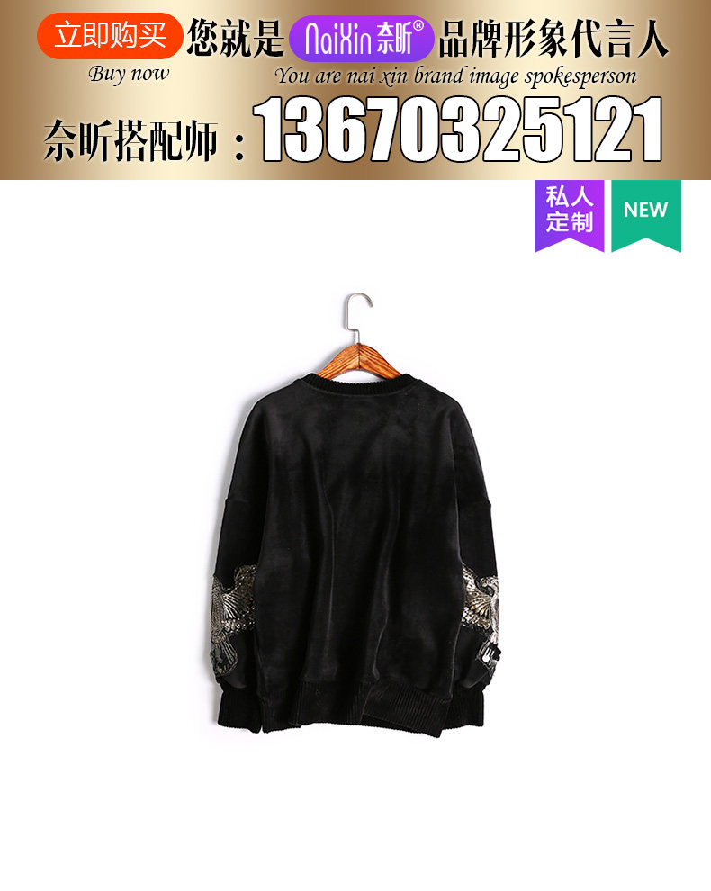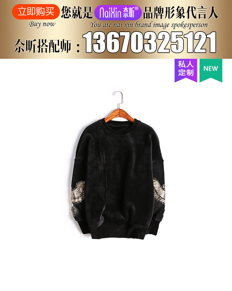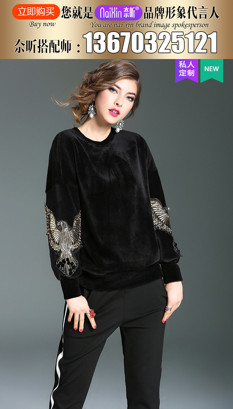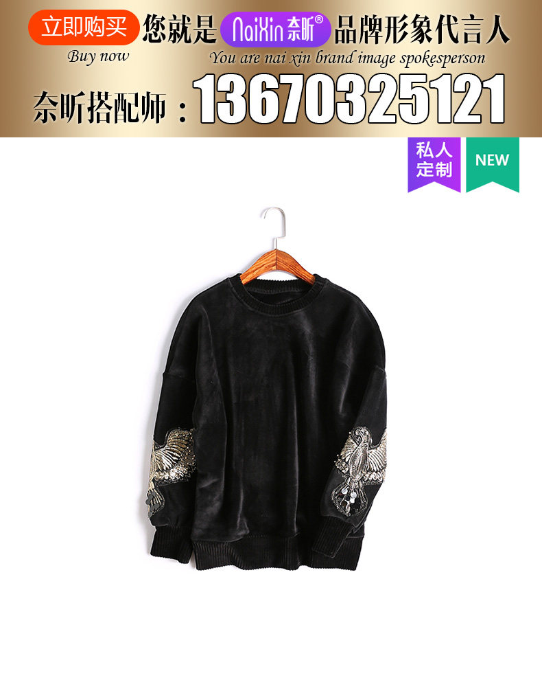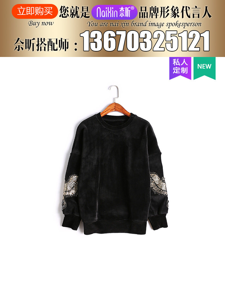 奈昕 Модные женские топы ранней весны по индивидуальному заказу 126396, черный универсальный пуловер с вышивкой в повседневном стиле