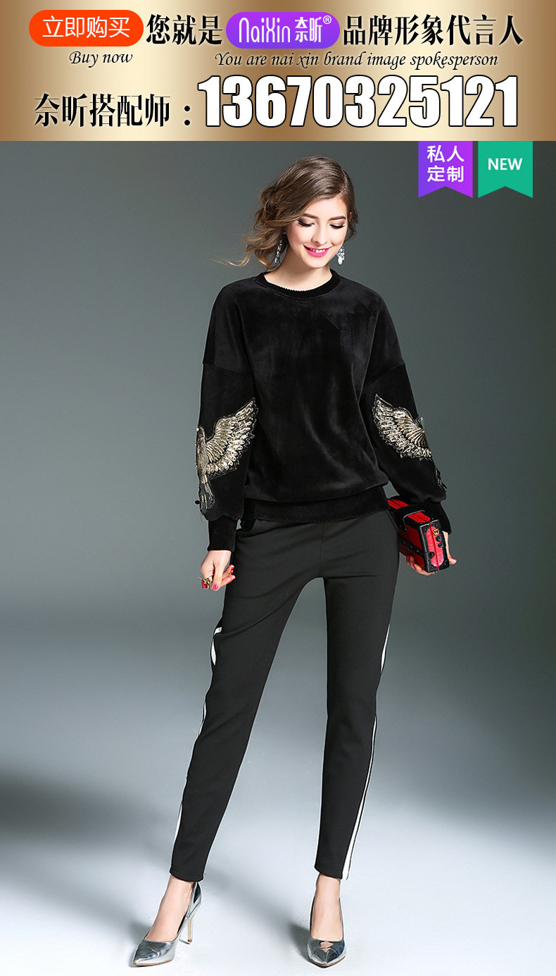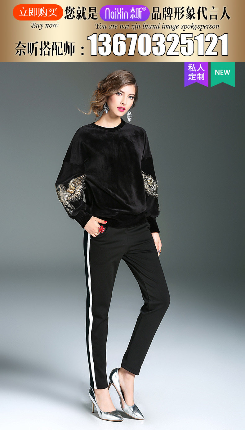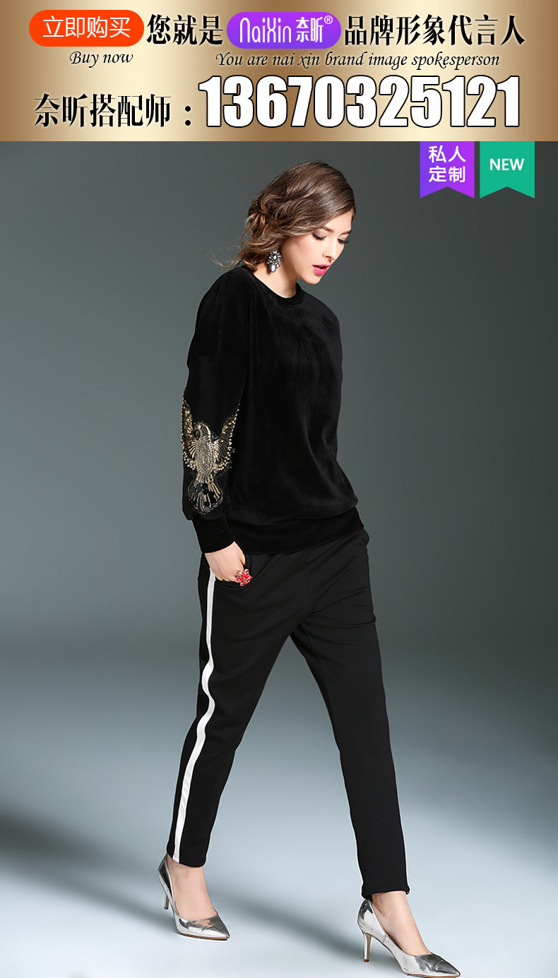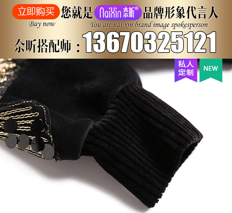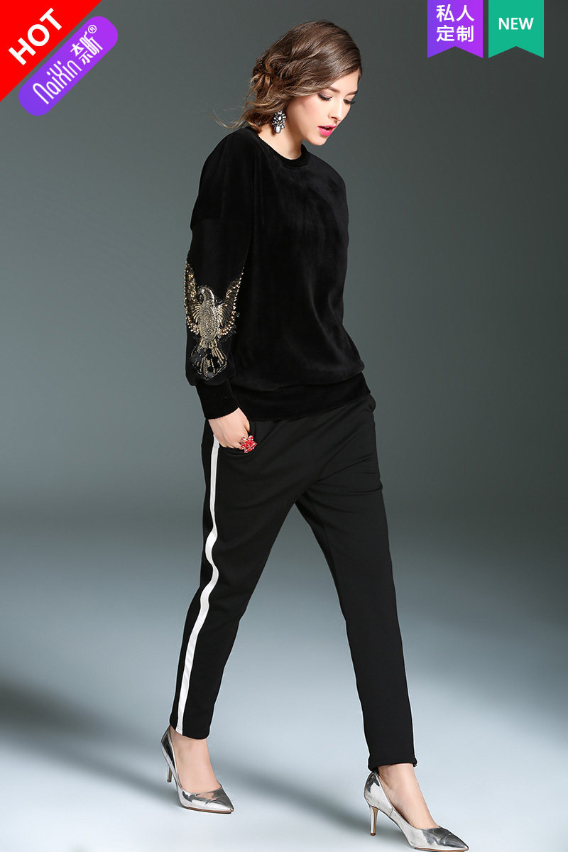 奈昕 Модные женские топы ранней весны по индивидуальному заказу 126396, черный универсальный пуловер с вышивкой в повседневном стиле
