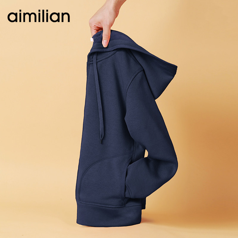 艾米恋 Демисезонная утепленная толстовка, кардиган с молнией, черная спортивная толстовка с капюшоном, куртка, подходит для подростков, облегающий крой