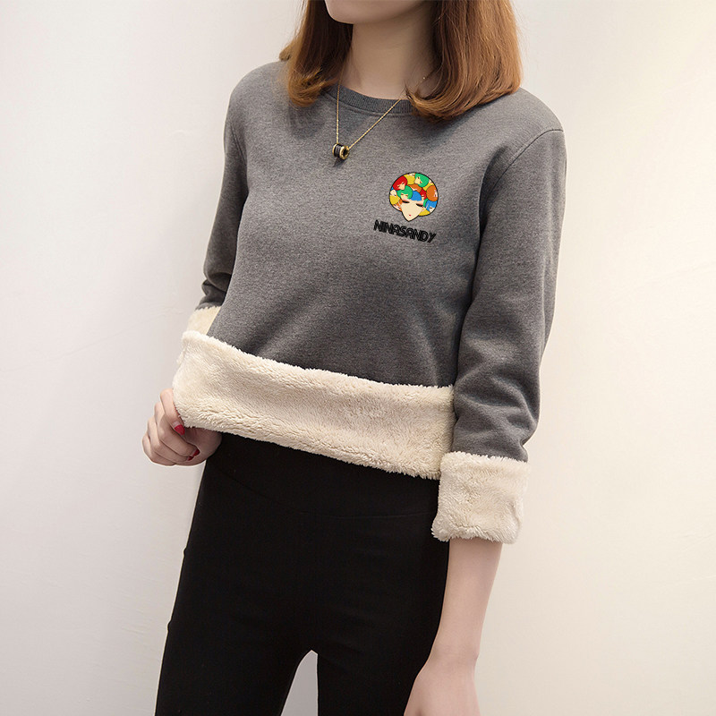 Демисезонный комплект, бархатная толстовка, утепленная куртка с круглым воротником, в корейском стиле