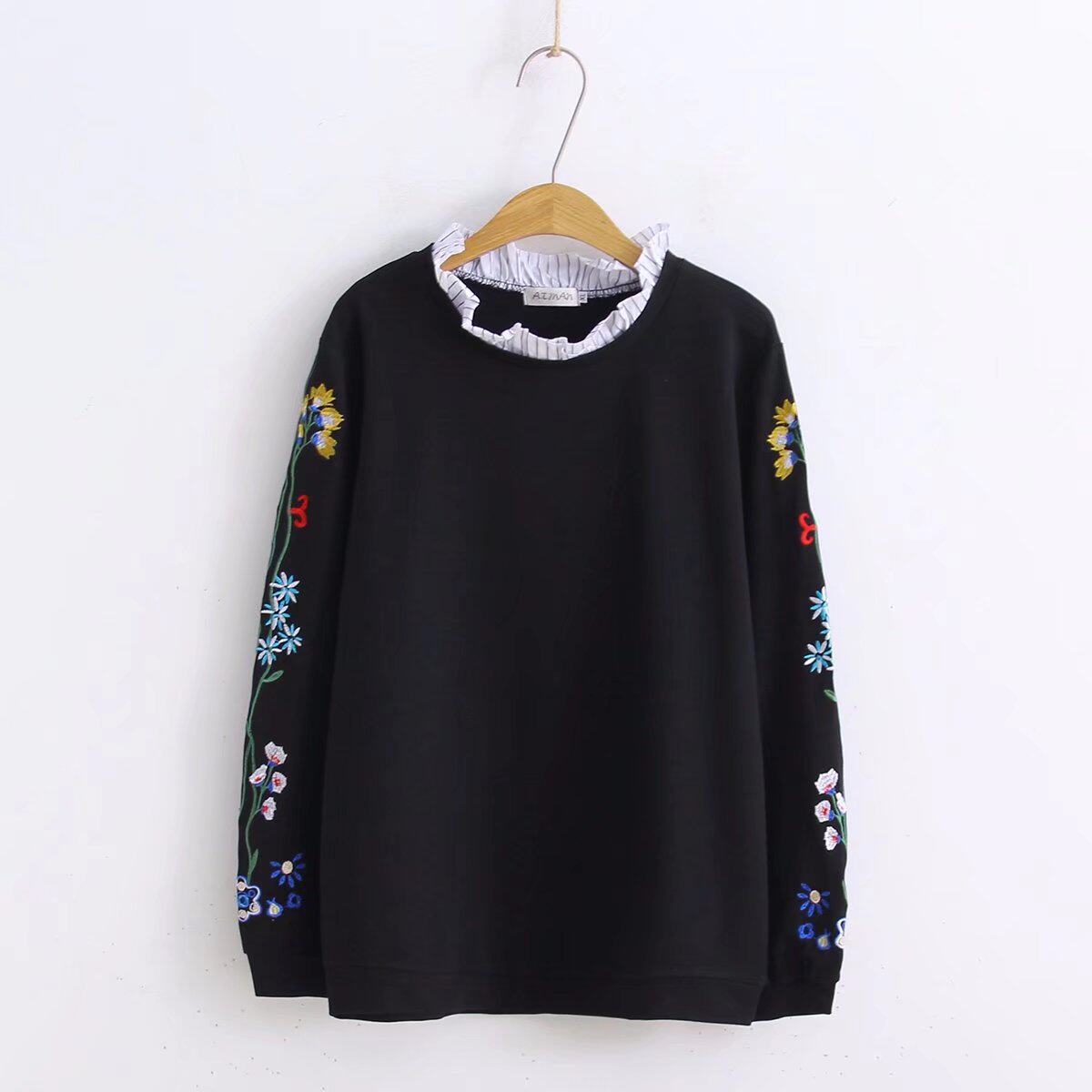 Весенний лонгслив, нарукавники, толстовка, 2018, большой размер, в корейском стиле, с вышивкой