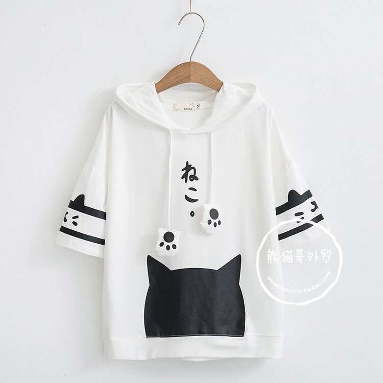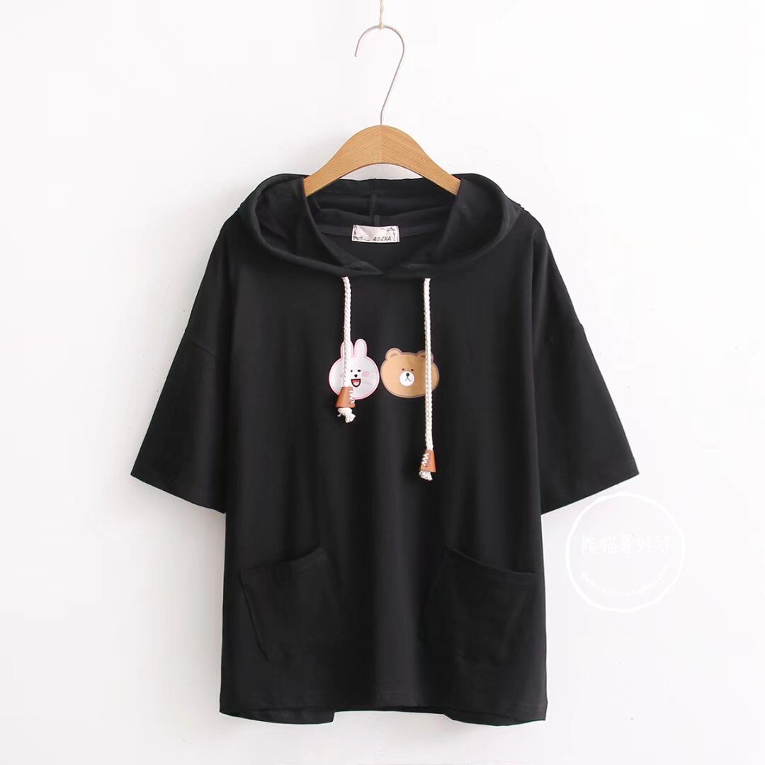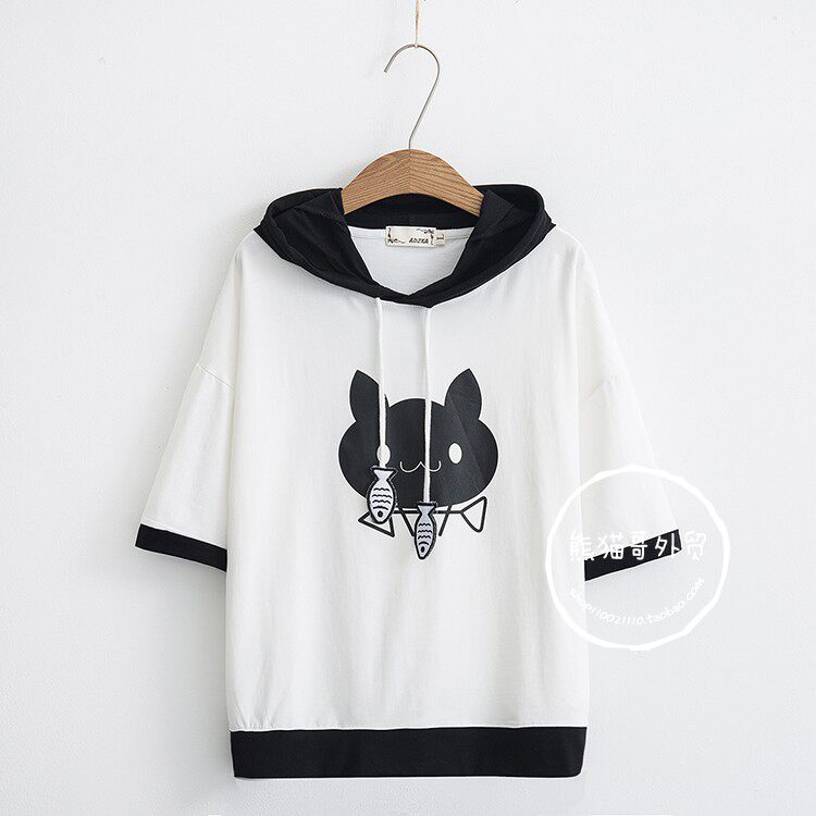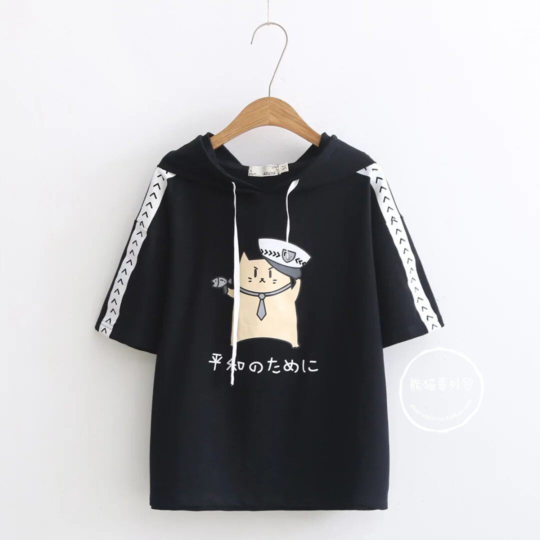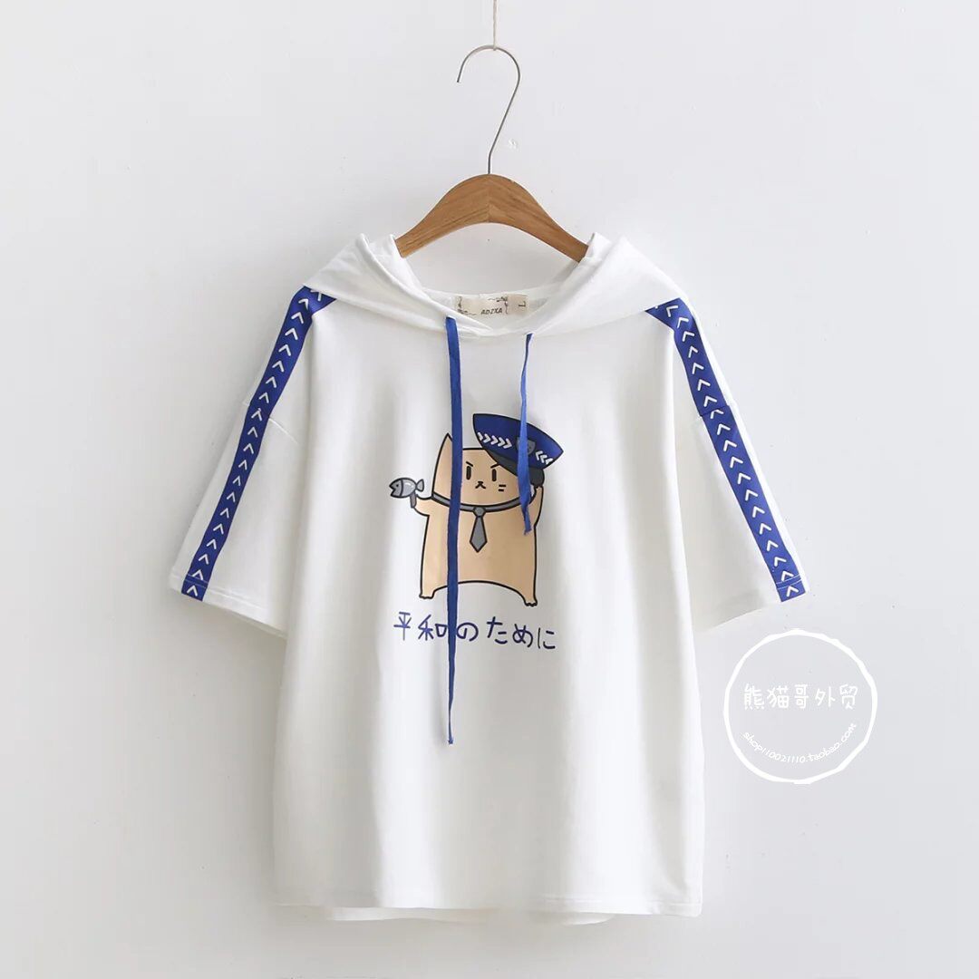 Летняя японская милая мультяшная толстовка с капюшоном для школьников и студентов, футболка с коротким рукавом, короткий рукав, принт