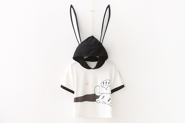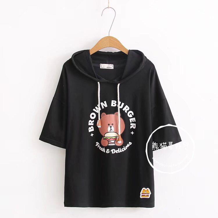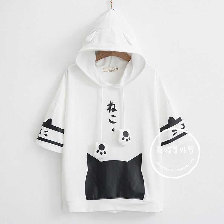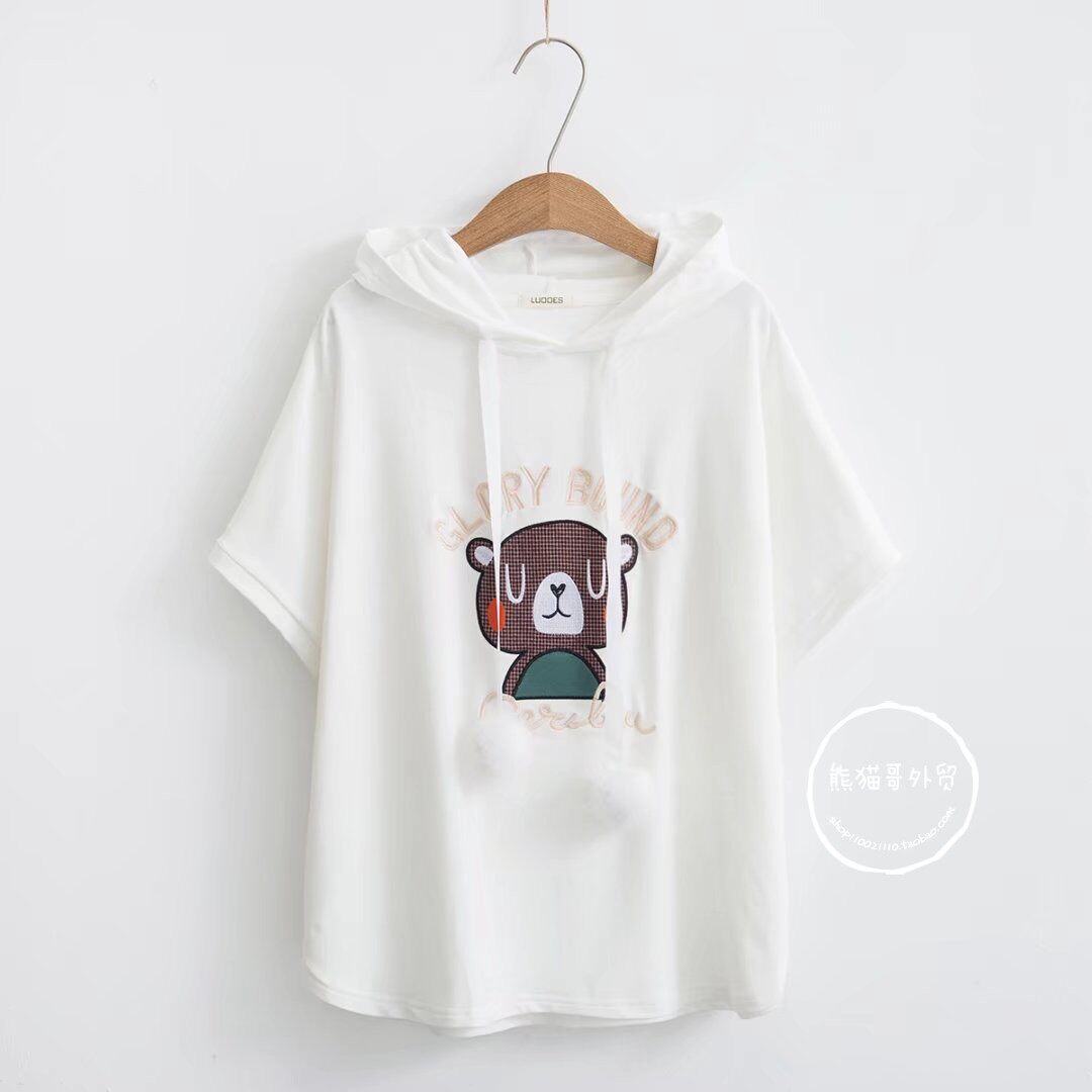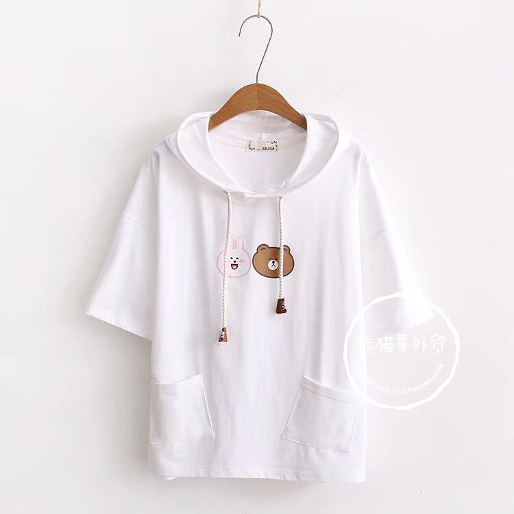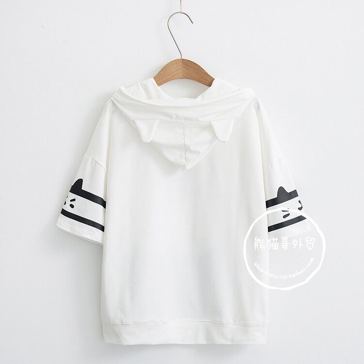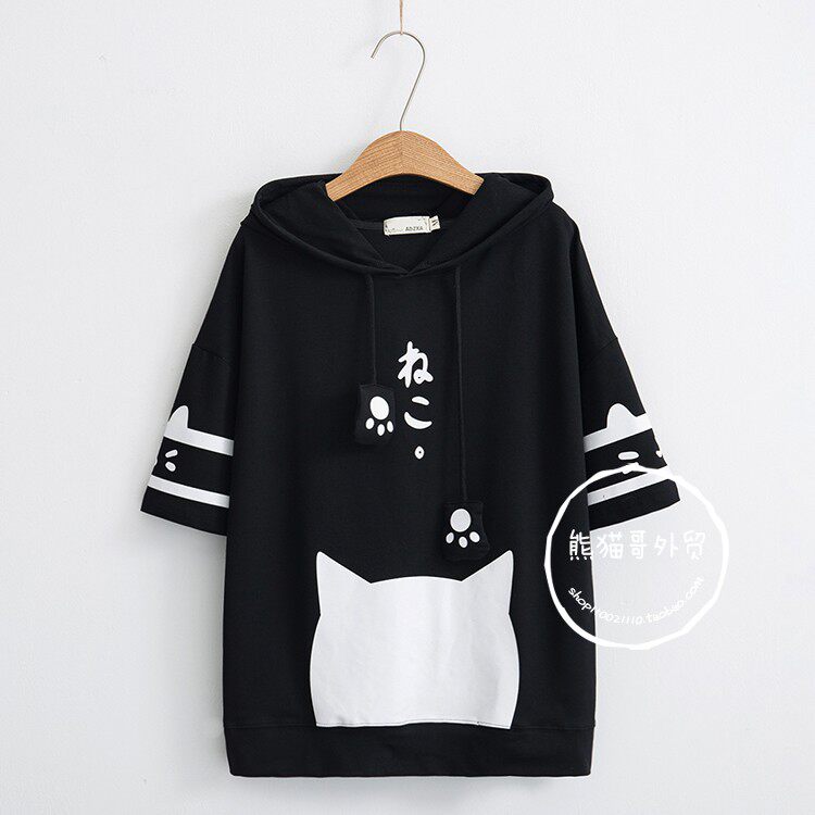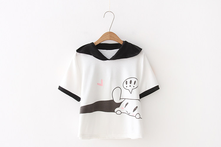 Летняя японская милая мультяшная толстовка с капюшоном для школьников и студентов, футболка с коротким рукавом, короткий рукав, принт