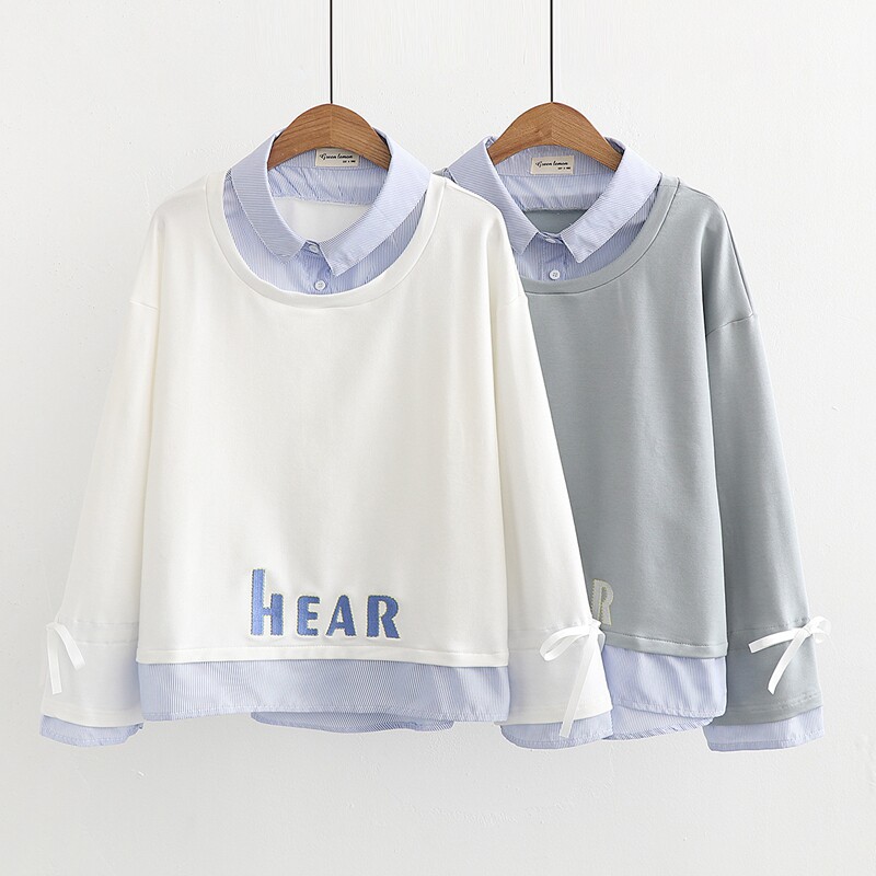 Весенний комплект, лонгслив, японский свитшот, свежая куртка, 2020, тренд сезона, воротник поло, с вышивкой, свободный крой