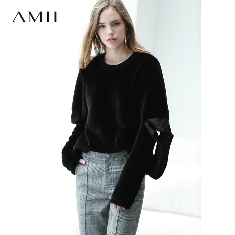 Amii Минималистичная утепленная зимняя толстовка с круглым воротником, в западном стиле