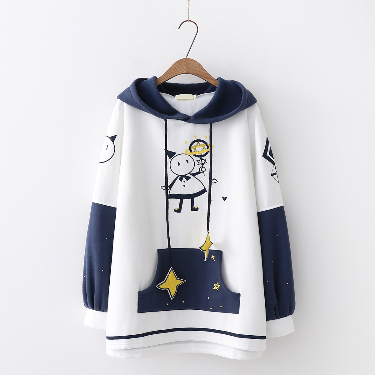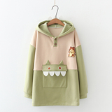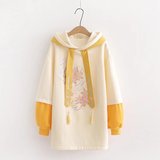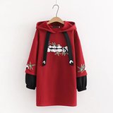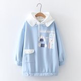 Японская длинная толстовка с капюшоном, милый демисезонный пуховик, платье, увеличенная толщина, свободный крой