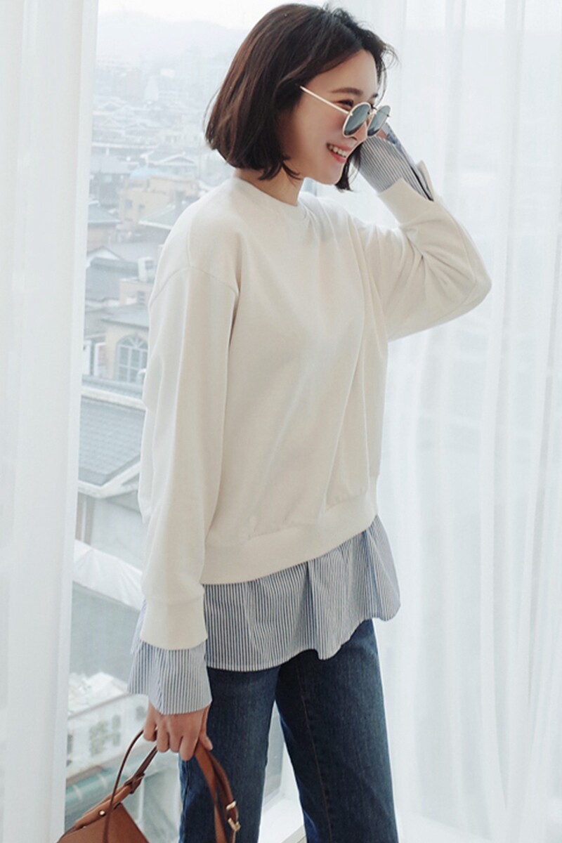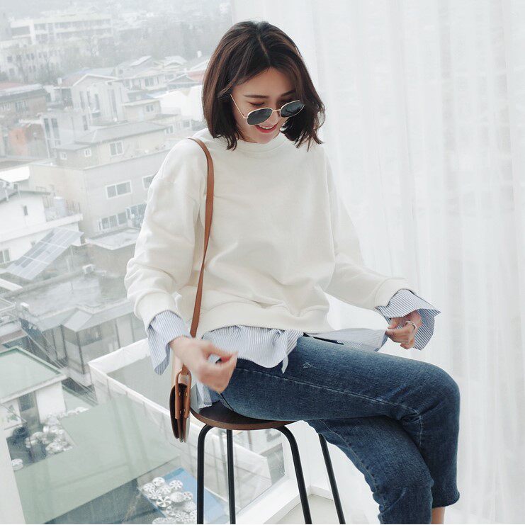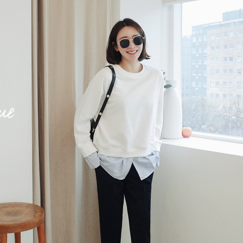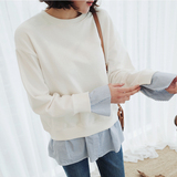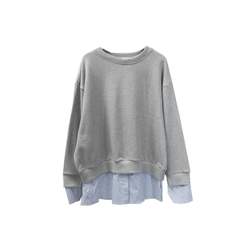 T148 Корейская женская одежда Новый продукт 2023 Поддельный сращивающий сплайсинг и осенний пуловер с длинными рукавами.