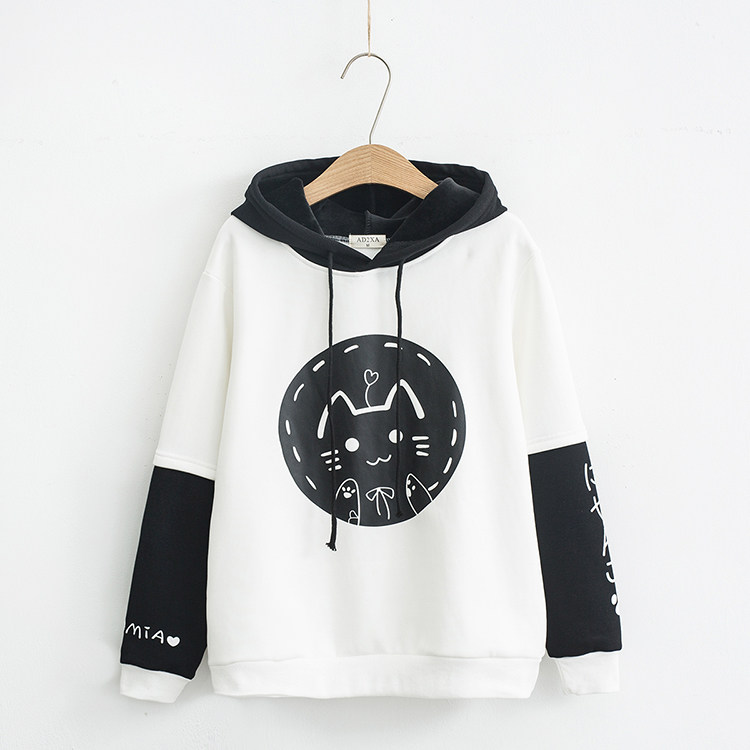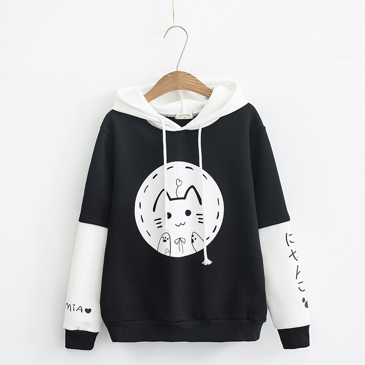 Милая утепленная толстовка, осенняя утепленная японская школьная юбка для школьников и студентов, в корейском стиле, 2020, оверсайз