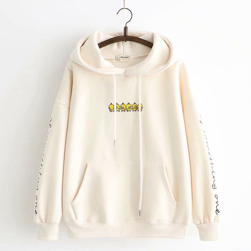 Японский пуховик, лонгслив, милая утепленная толстовка для школьников и студентов, коллекция 2023, свободный крой, с вышивкой