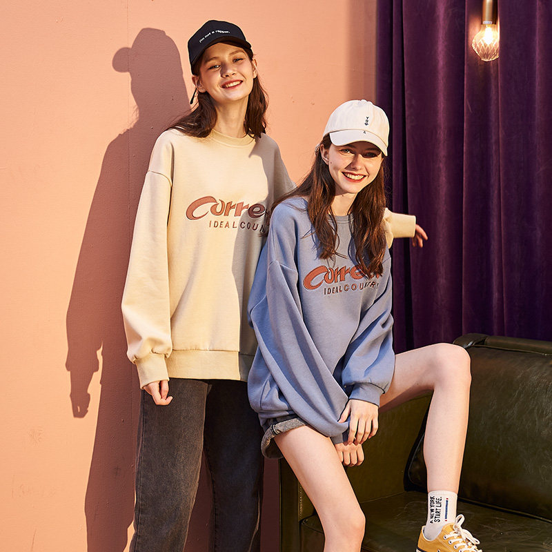 Осенний свитшот с круглым воротником, лонгслив, тонкая толстовка, 2019, в корейском стиле, оверсайз