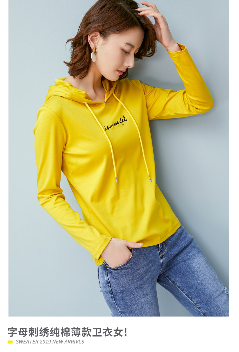 Хлопковая тонкая толстовка с капюшоном, осенний однотонный балахон, с вышивкой, 2023, облегающий крой