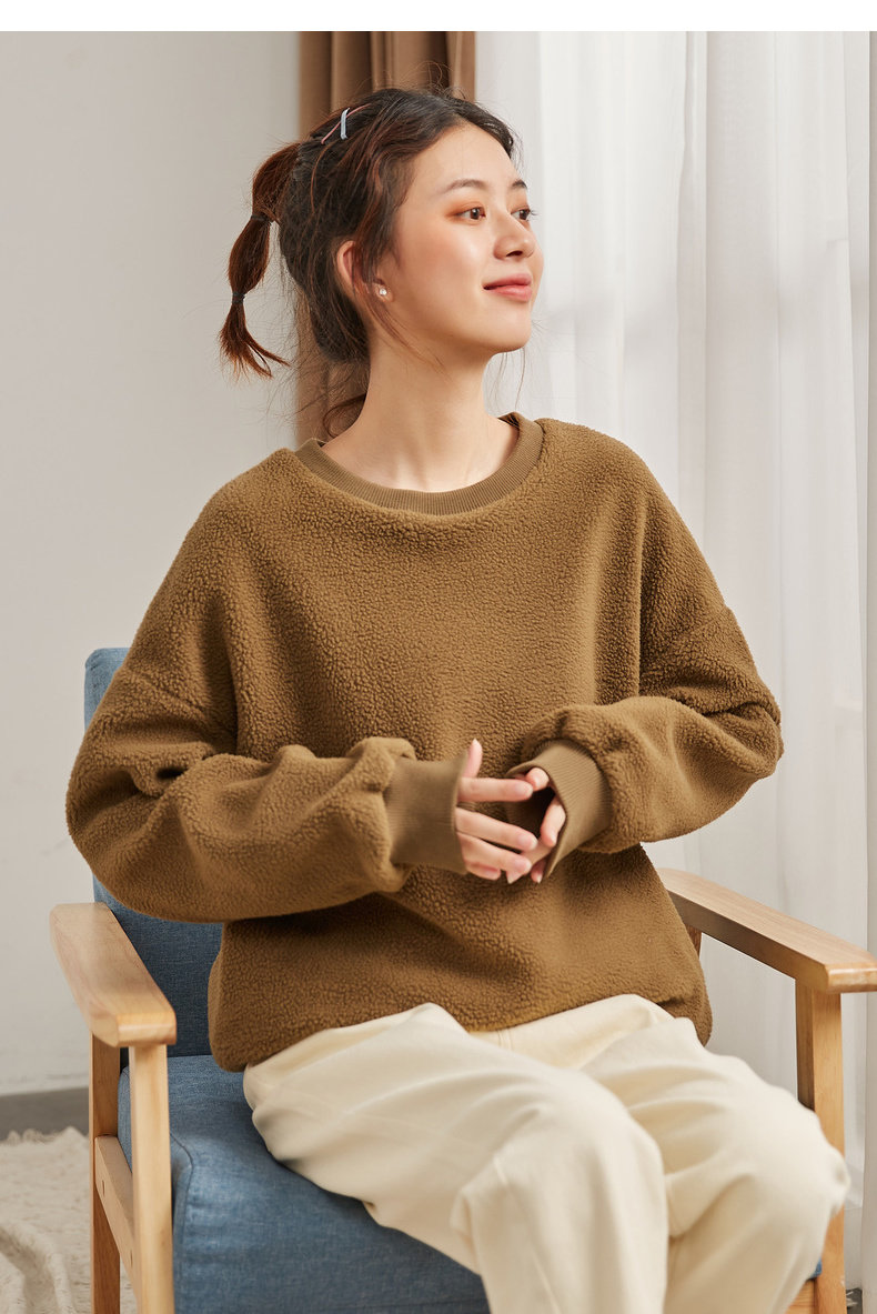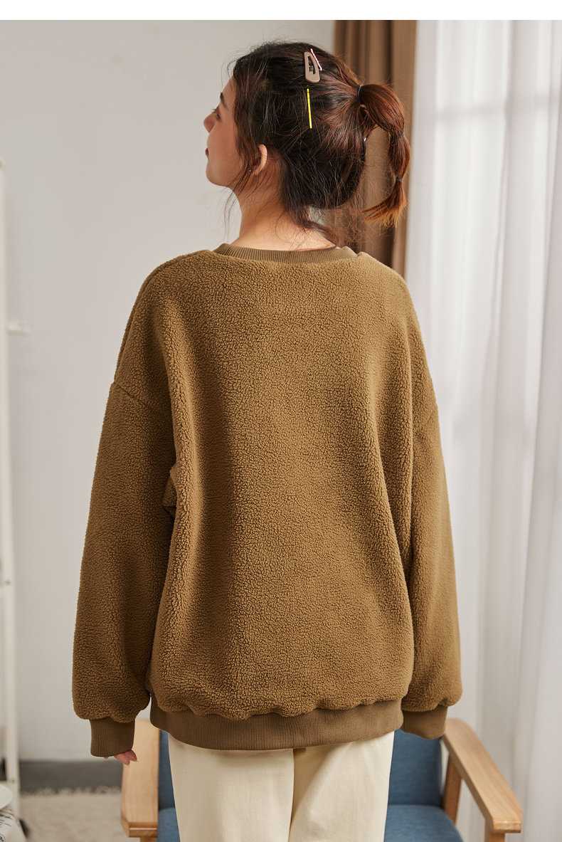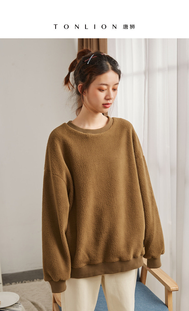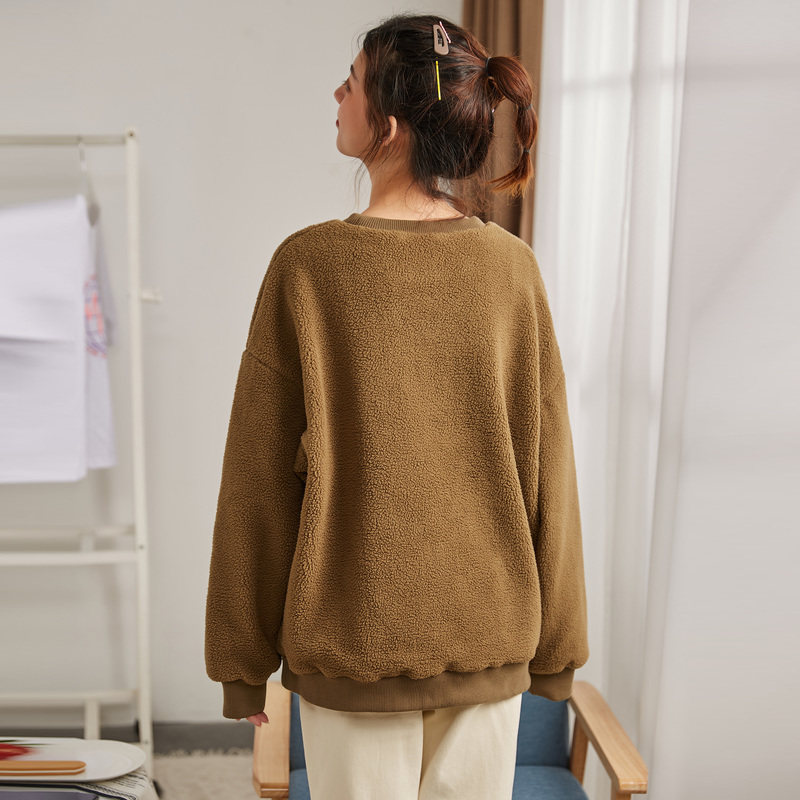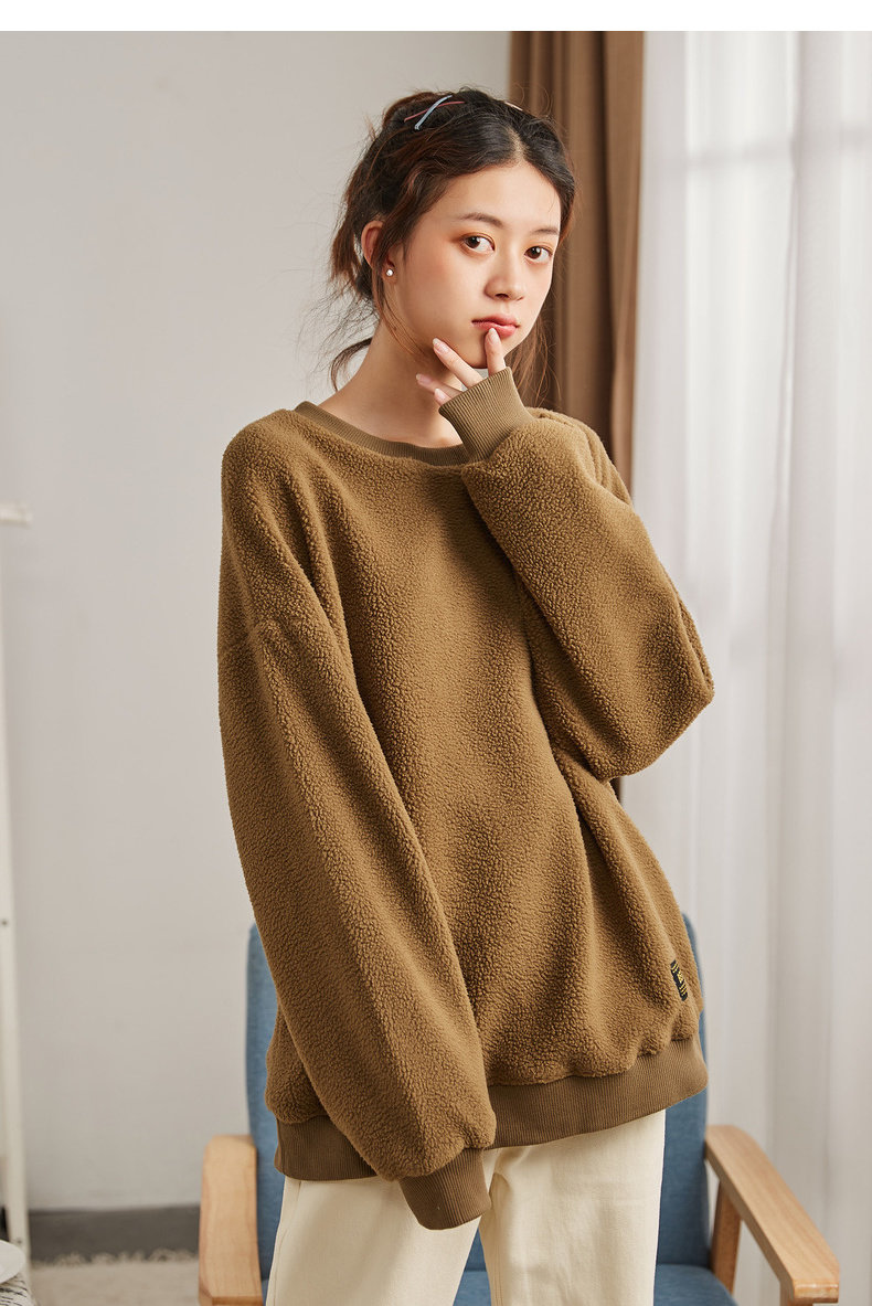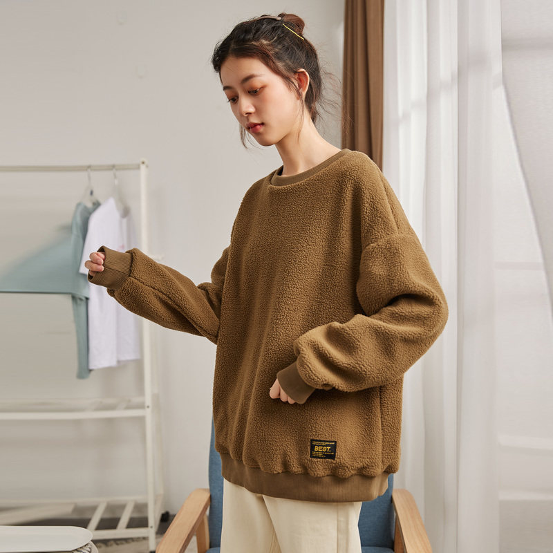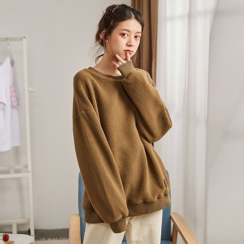 Зимний свитшот с круглым воротником, лонгслив, толстовка, оверсайз, увеличенная толщина, в корейском стиле