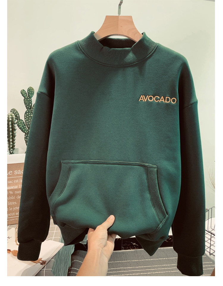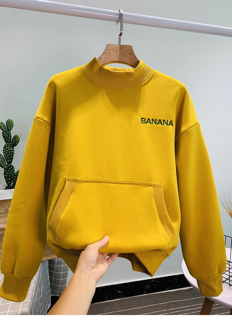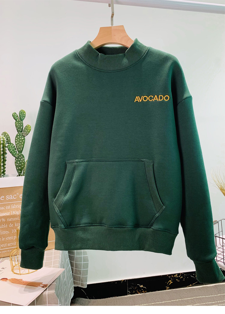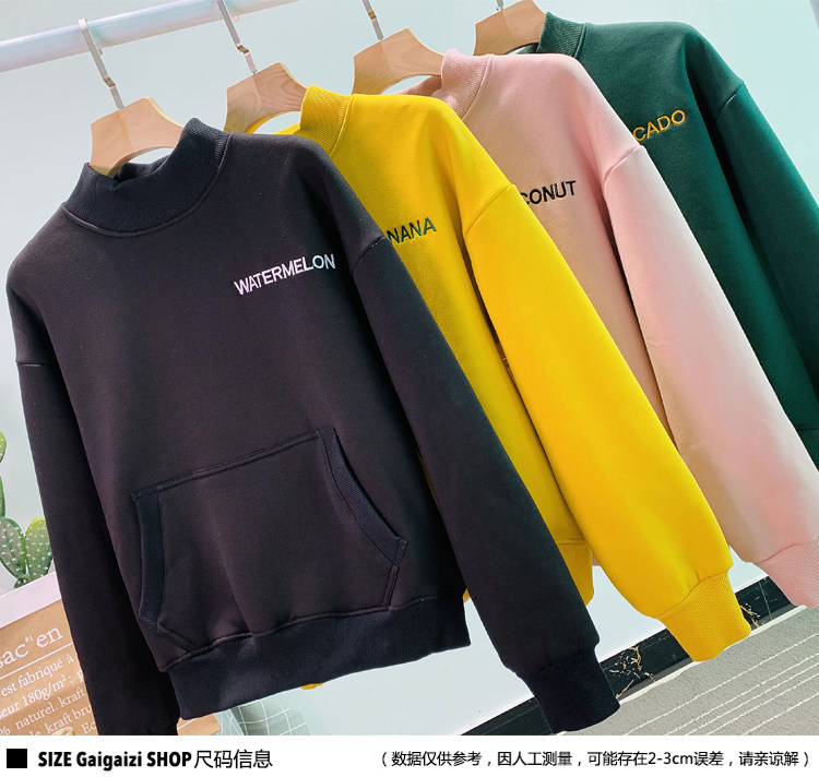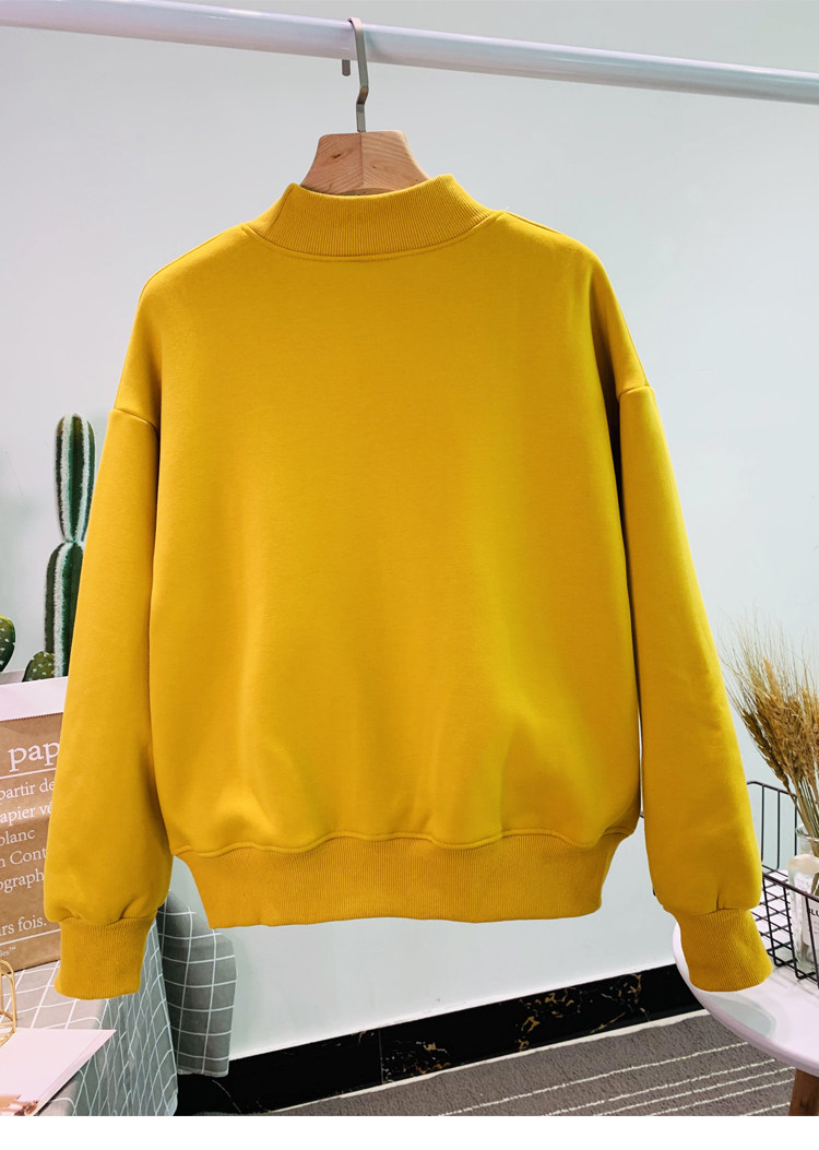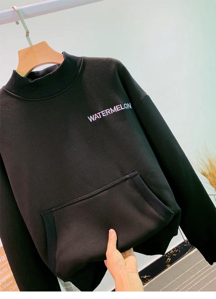 Демисезонный утепленный бархатный лонгслив, нарукавники, толстовка, в корейском стиле, оверсайз, с вышивкой, высокий воротник