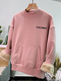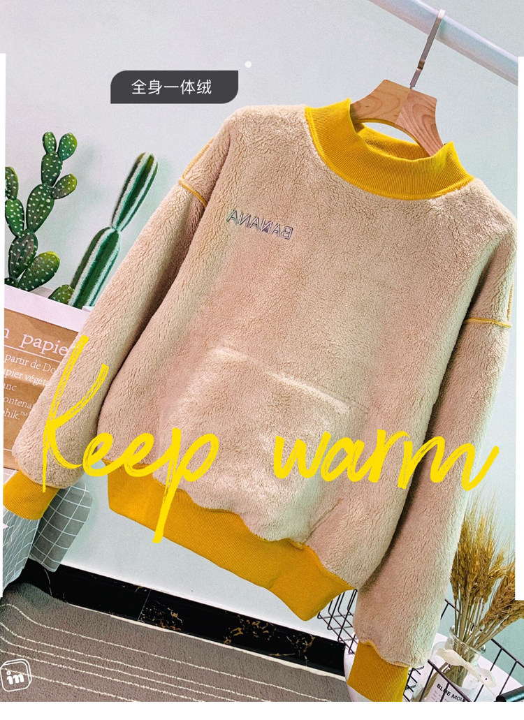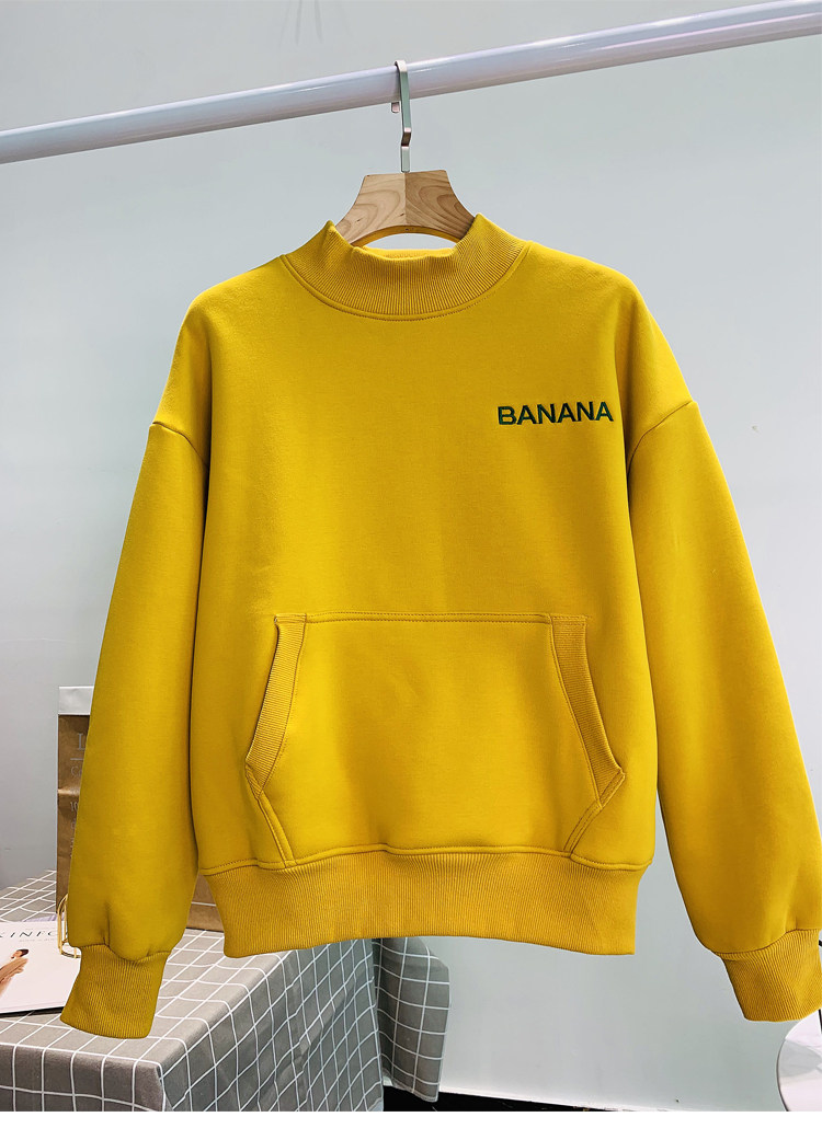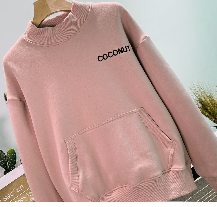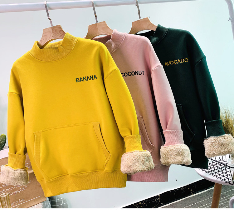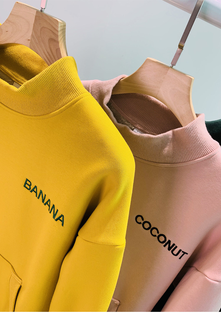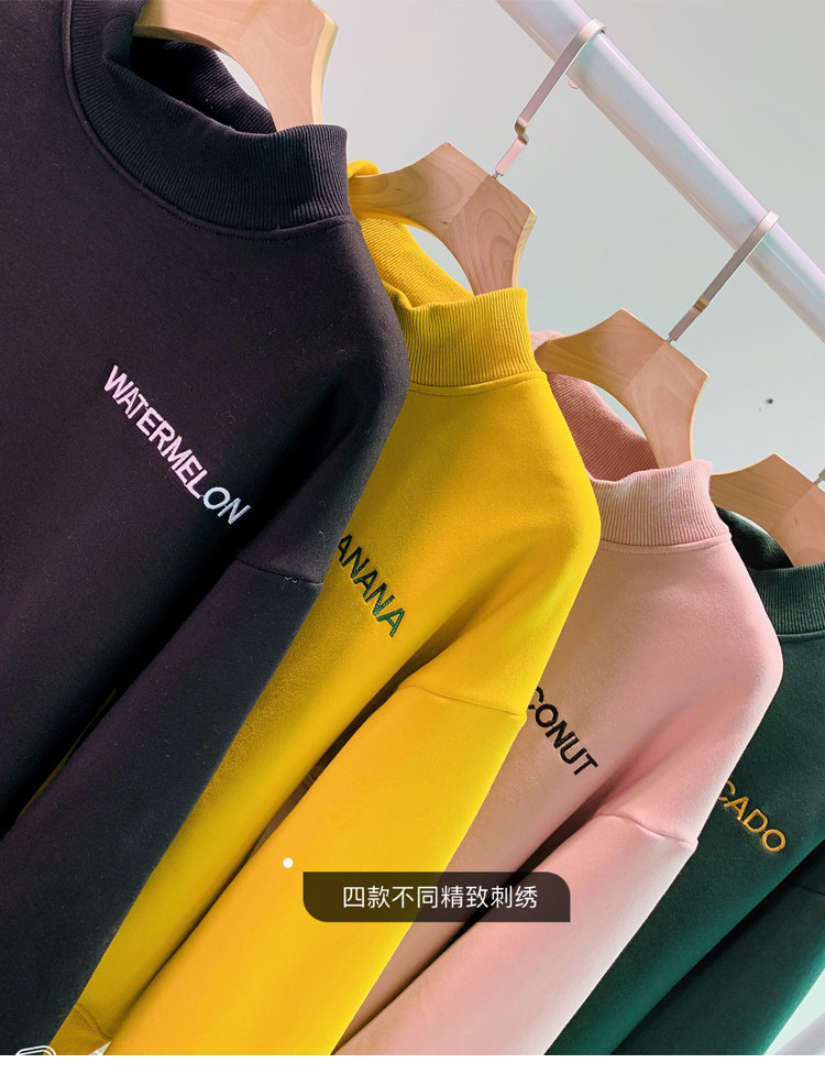 Демисезонный утепленный бархатный лонгслив, нарукавники, толстовка, в корейском стиле, оверсайз, с вышивкой, высокий воротник