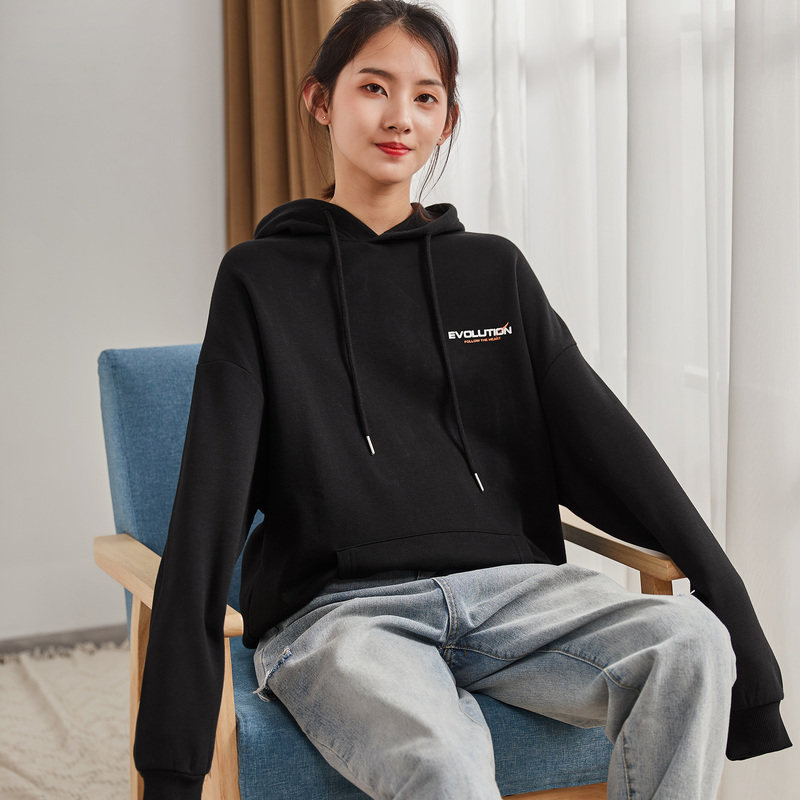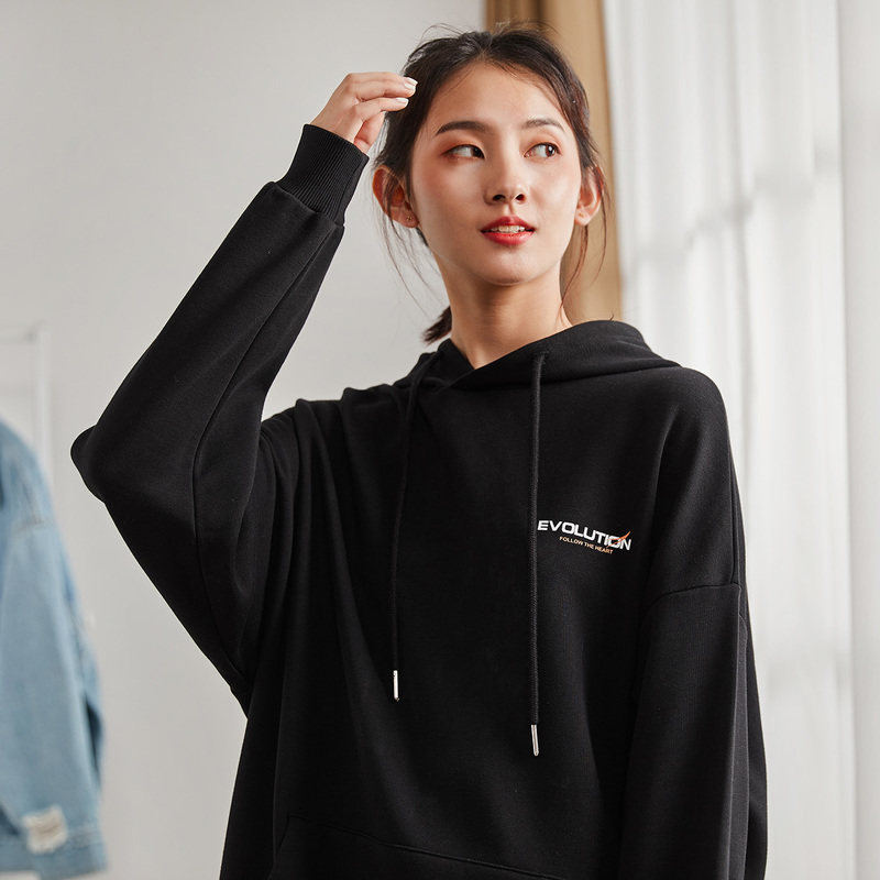 Осенняя толстовка с капюшоном, тонкий черный лонгслив, 2019, в корейском стиле