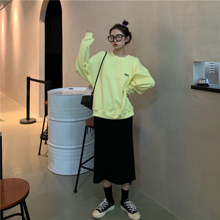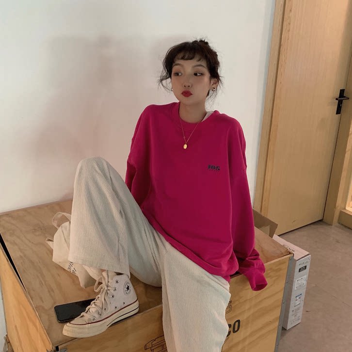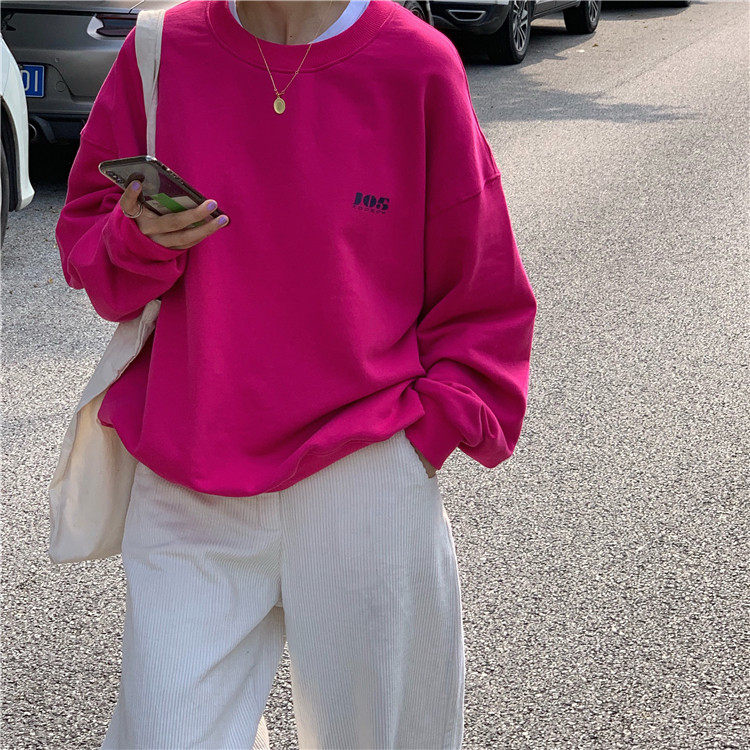 Осенний лонгслив, толстовка, куртка с круглым воротником, в корейском стиле, свободный крой