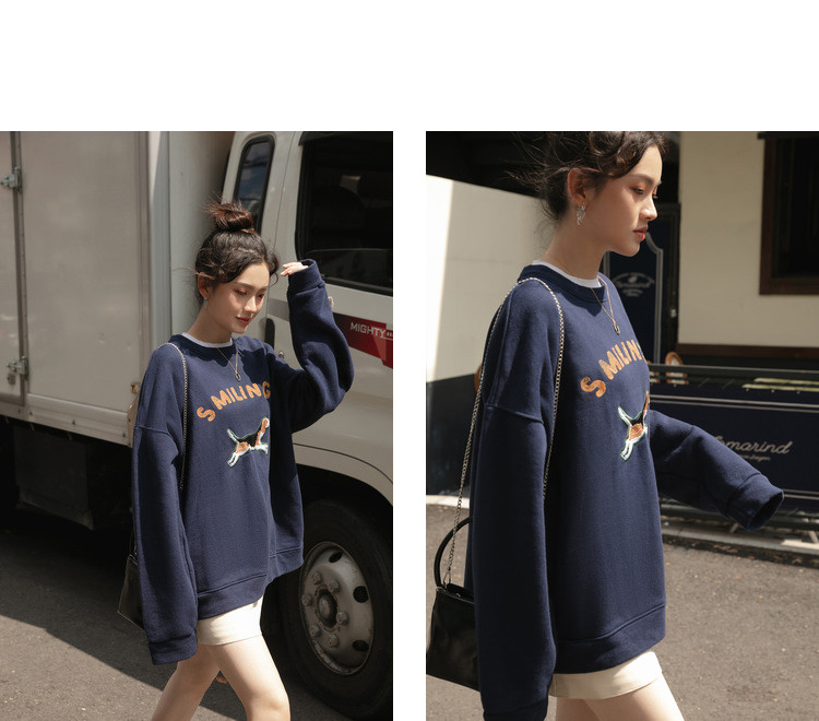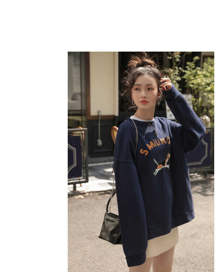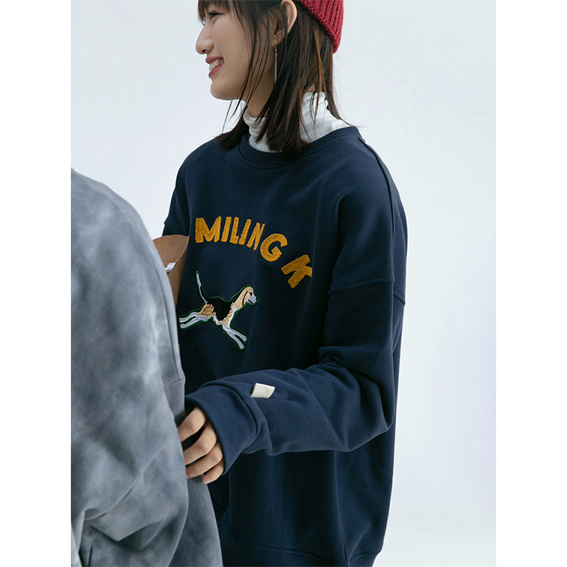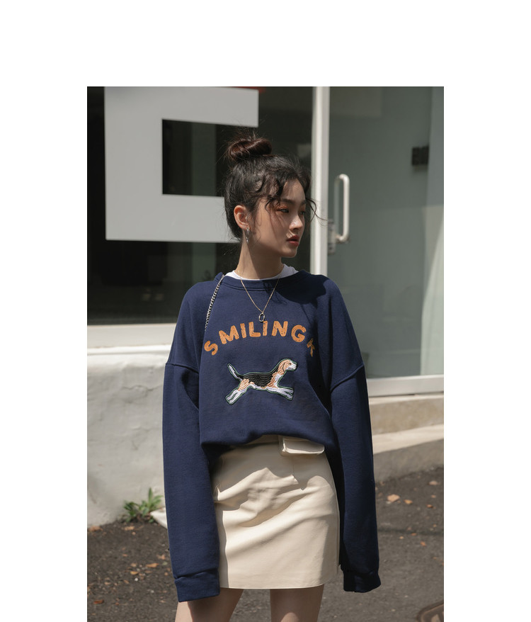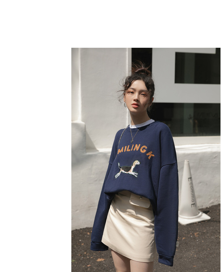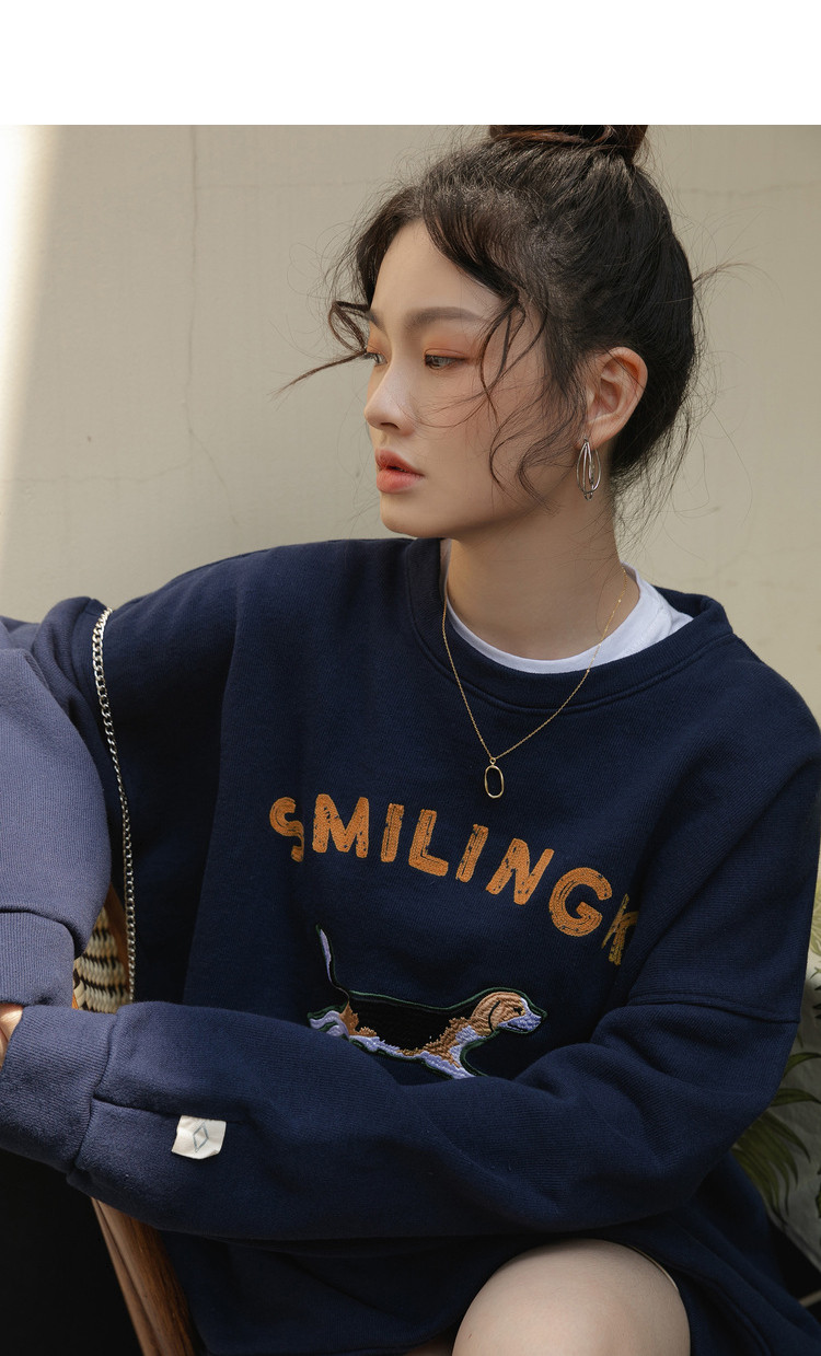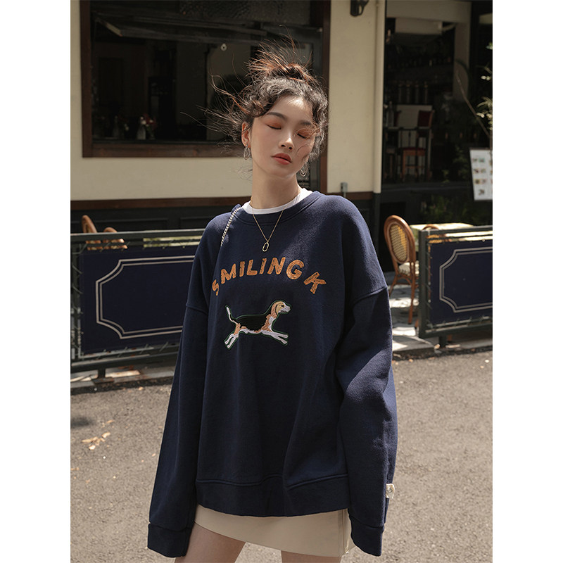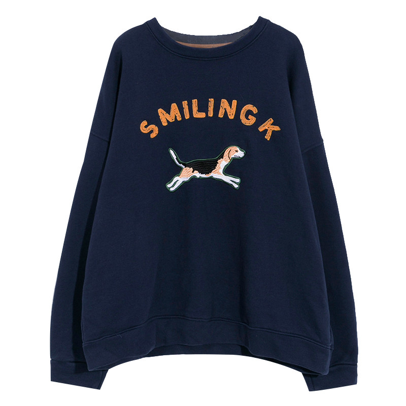 Синяя мультяшная толстовка с круглым воротником, 2020, с вышивкой