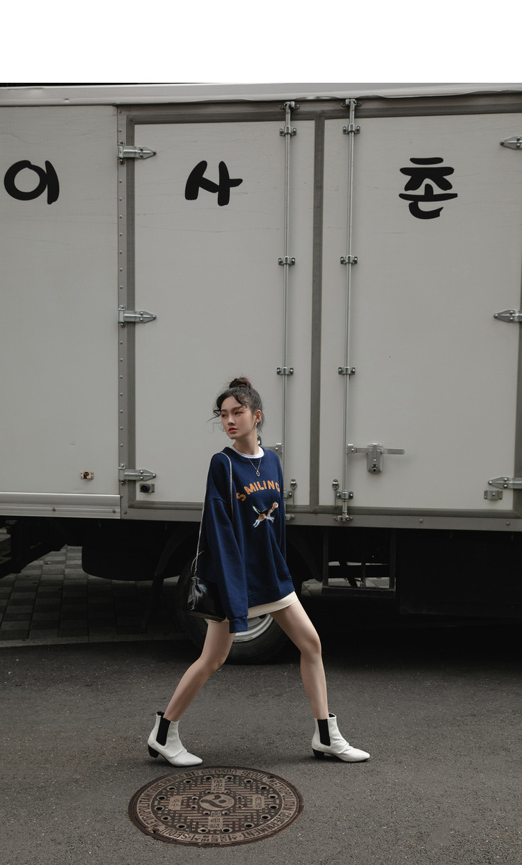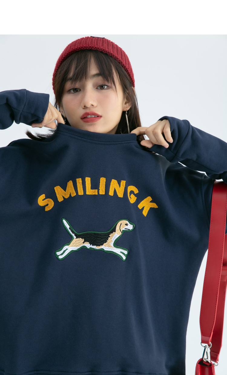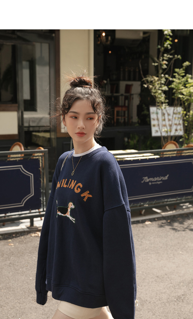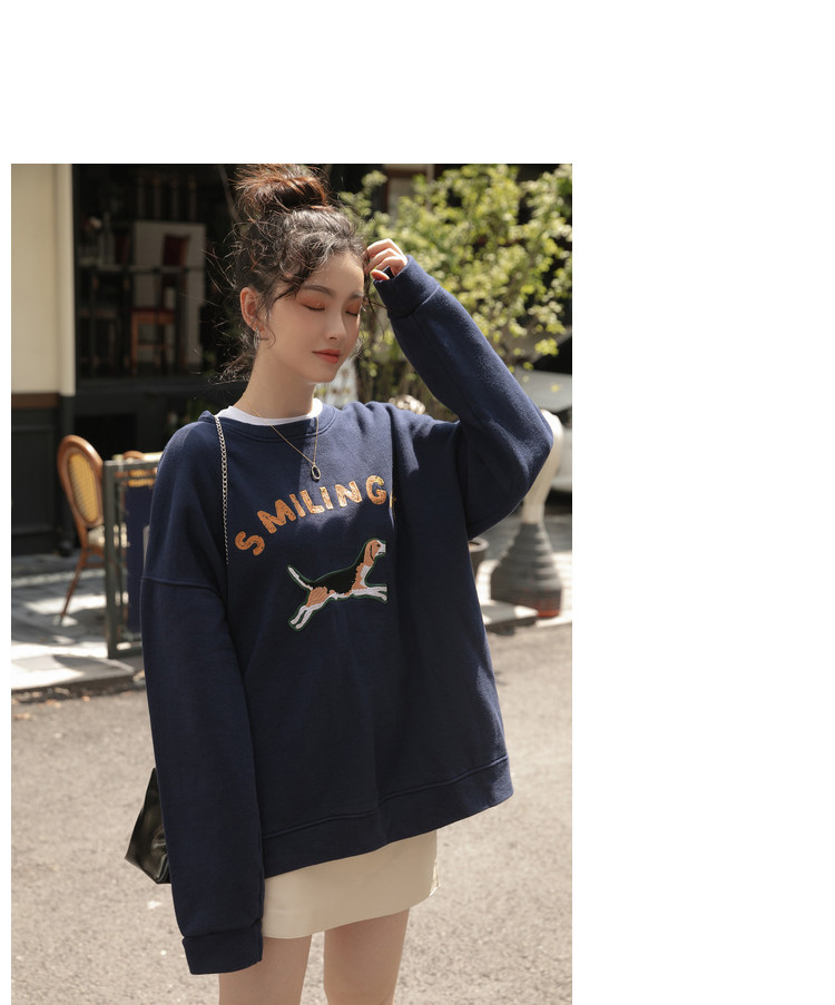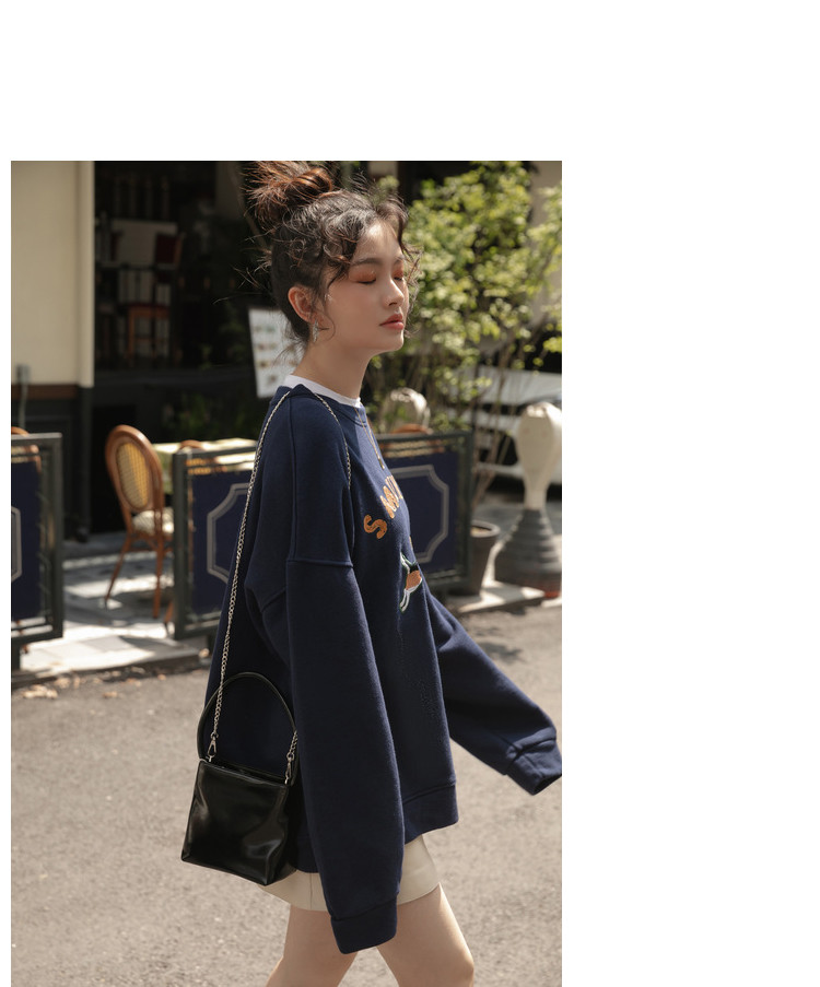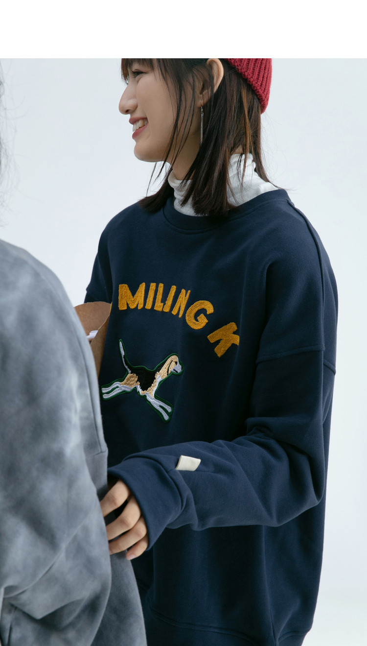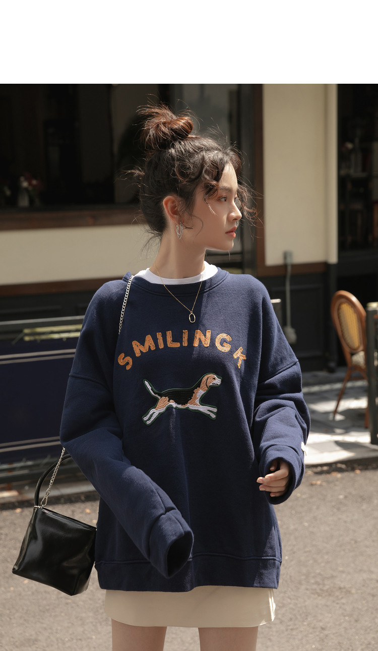 Синяя мультяшная толстовка с круглым воротником, 2020, с вышивкой