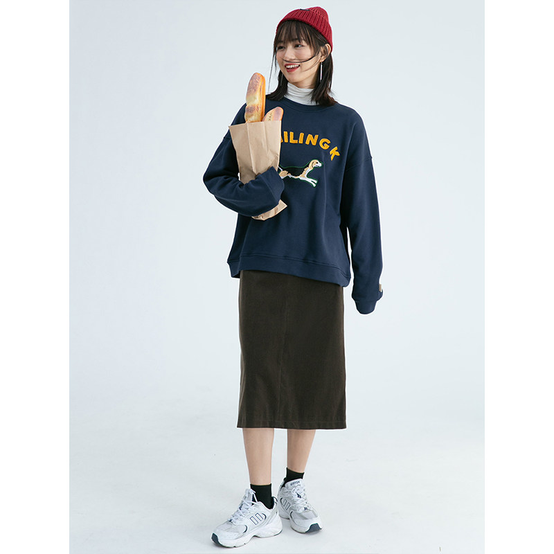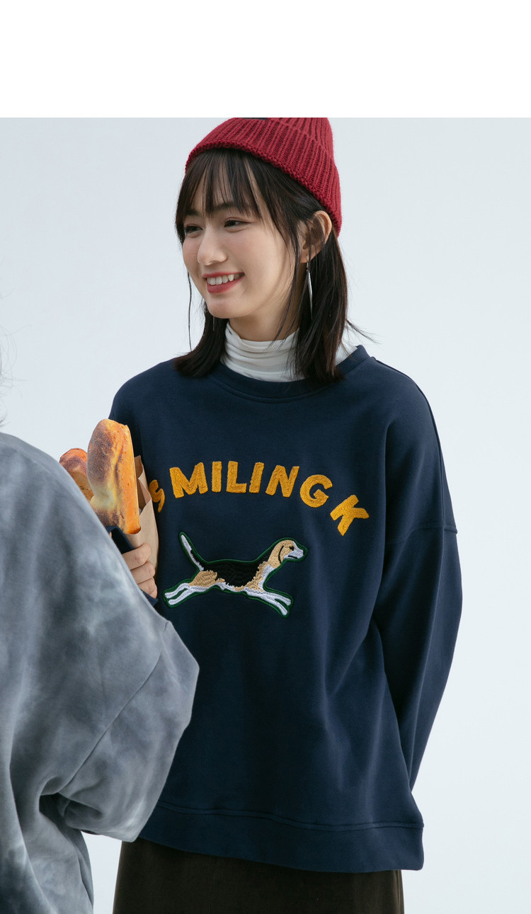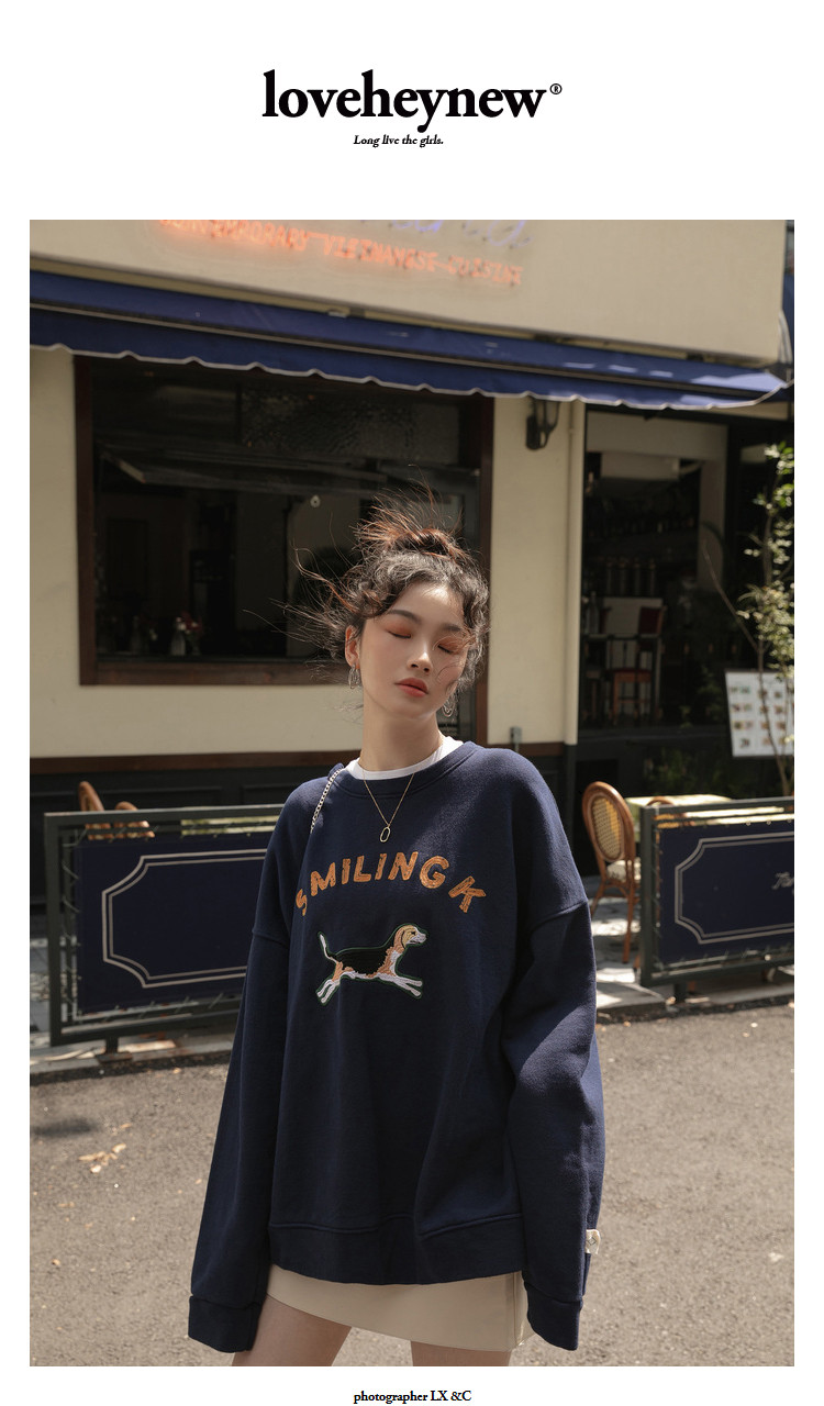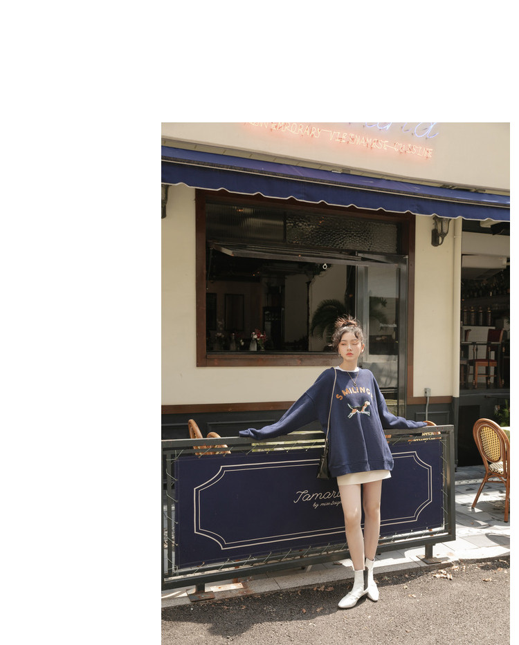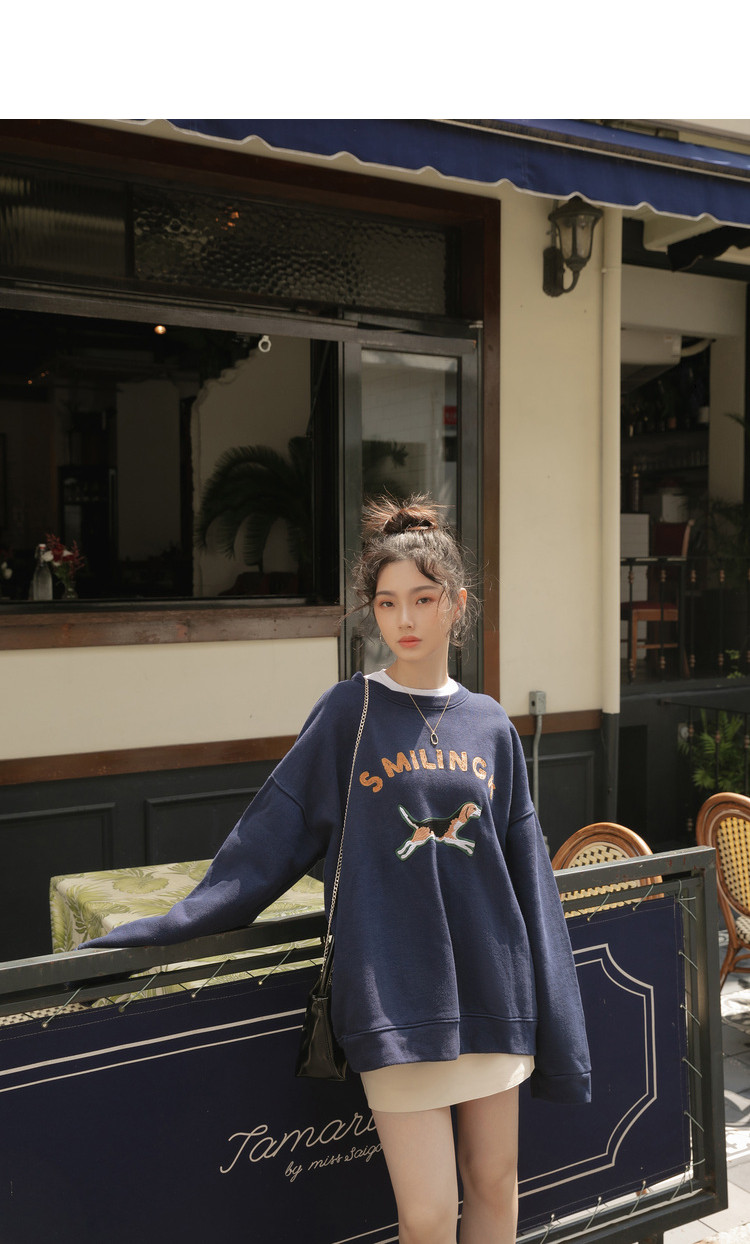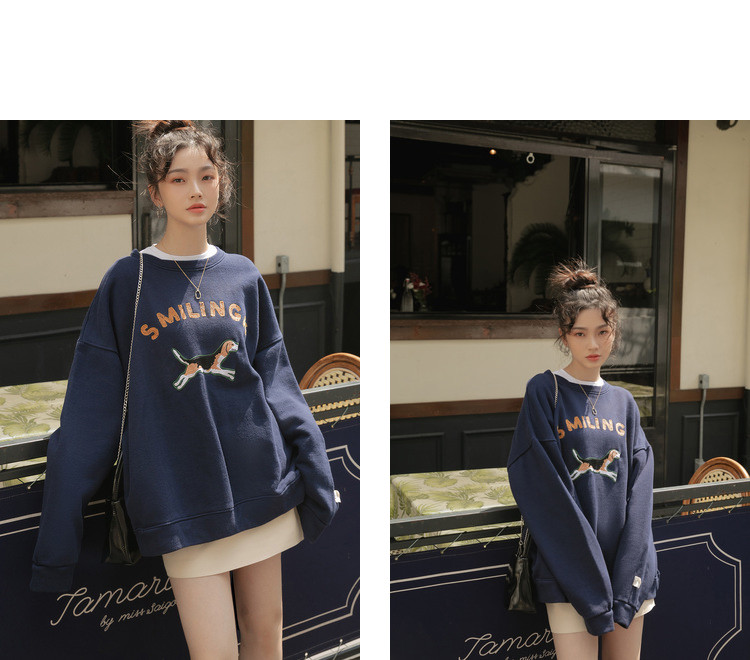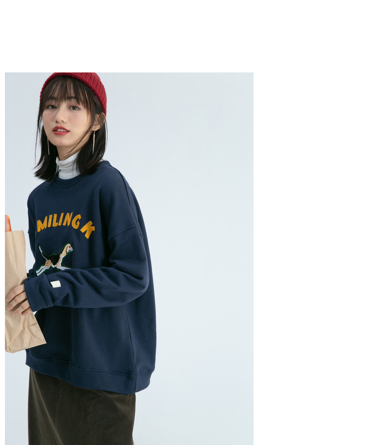 Синяя мультяшная толстовка с круглым воротником, 2020, с вышивкой