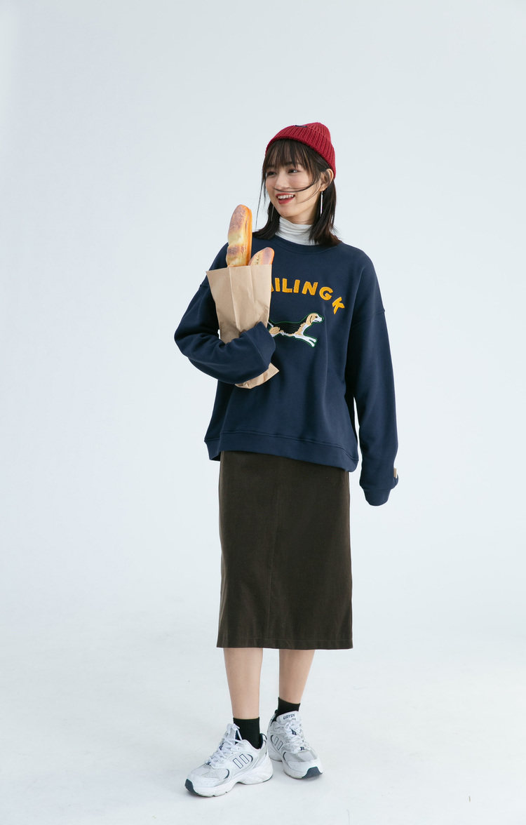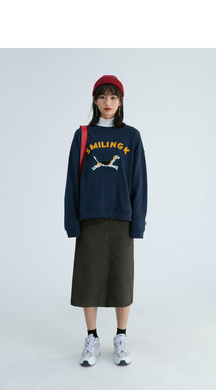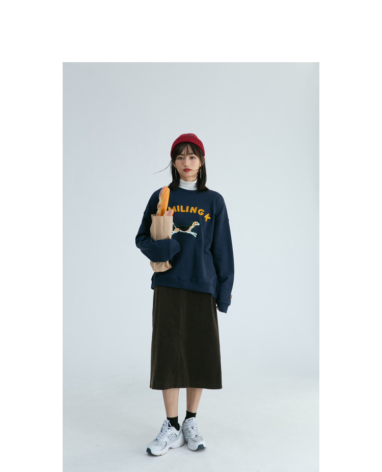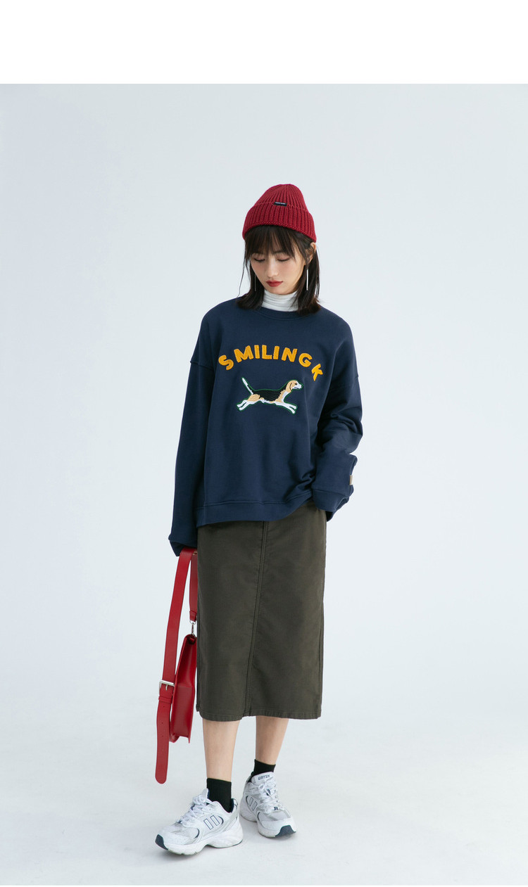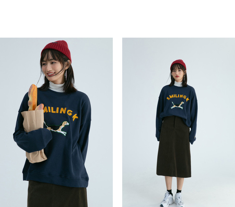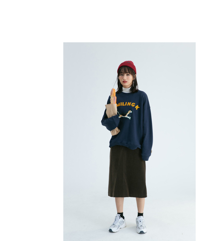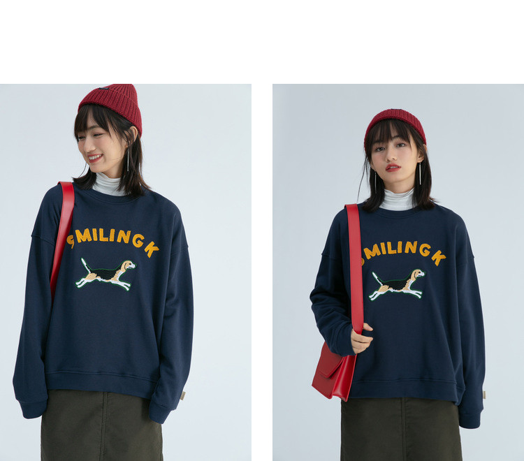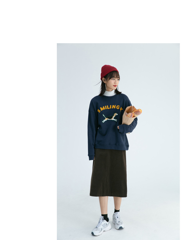 Синяя мультяшная толстовка с круглым воротником, 2020, с вышивкой