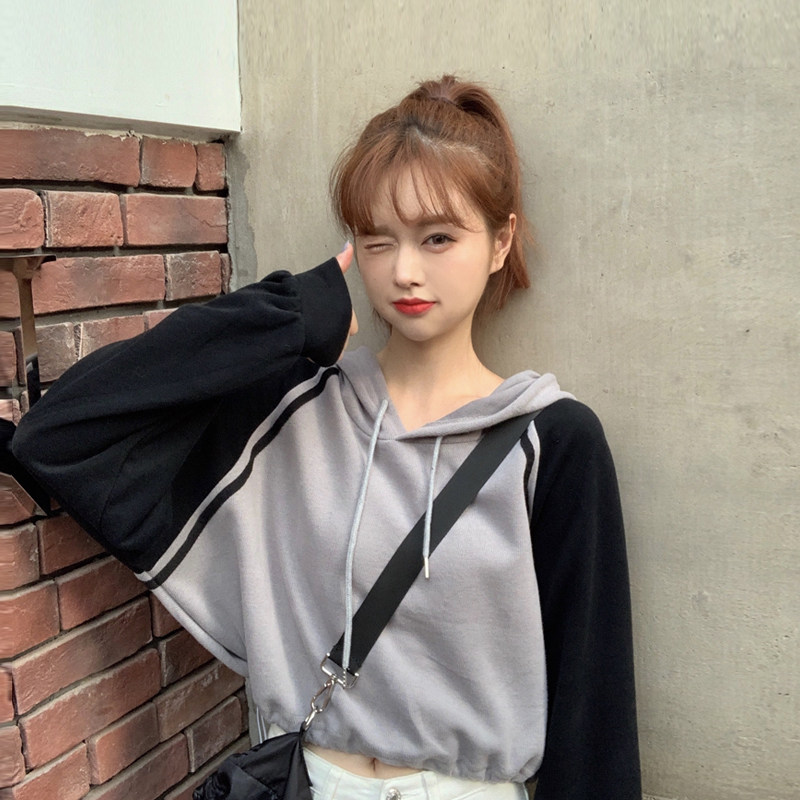 Толстовка с капюшоном, осенний лонгслив, короткая куртка, коллекция 2021, популярно в интернете, свободный крой, высокая талия