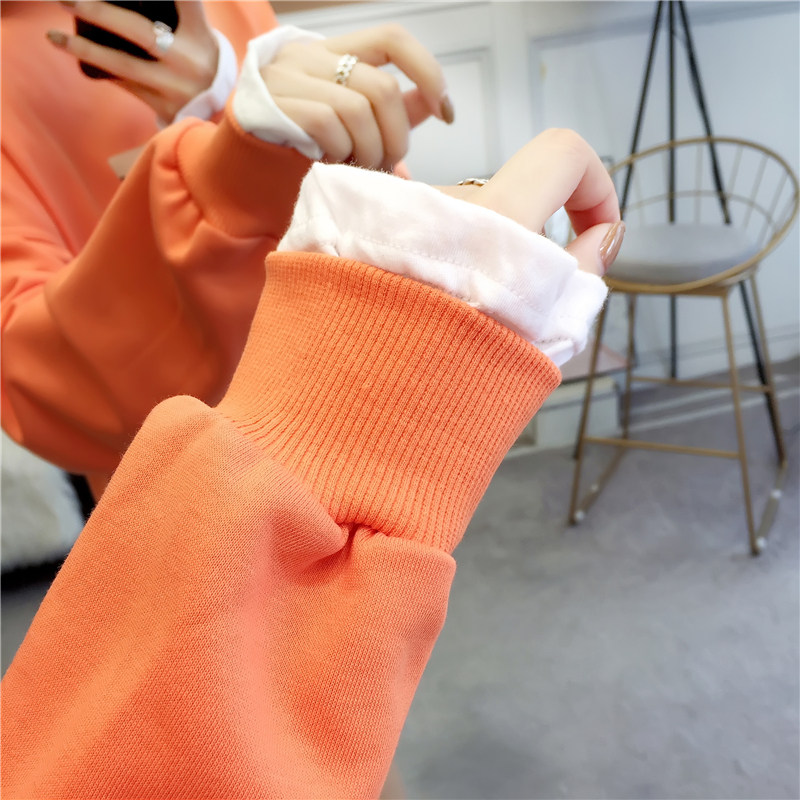 Термобелье для школьников и студентов, оранжевая тонкая толстовка, коллекция 2021, в корейском стиле, оверсайз, 2 предмета