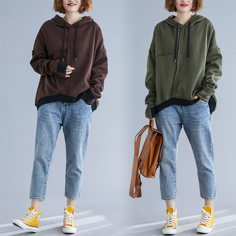 Осенняя демисезонная утепленная толстовка для отдыха, толстовка с капюшоном, большой размер, в корейском стиле, на шнурках