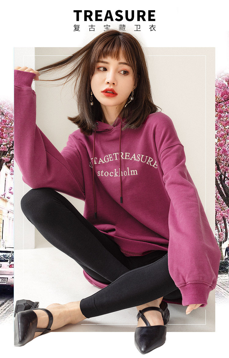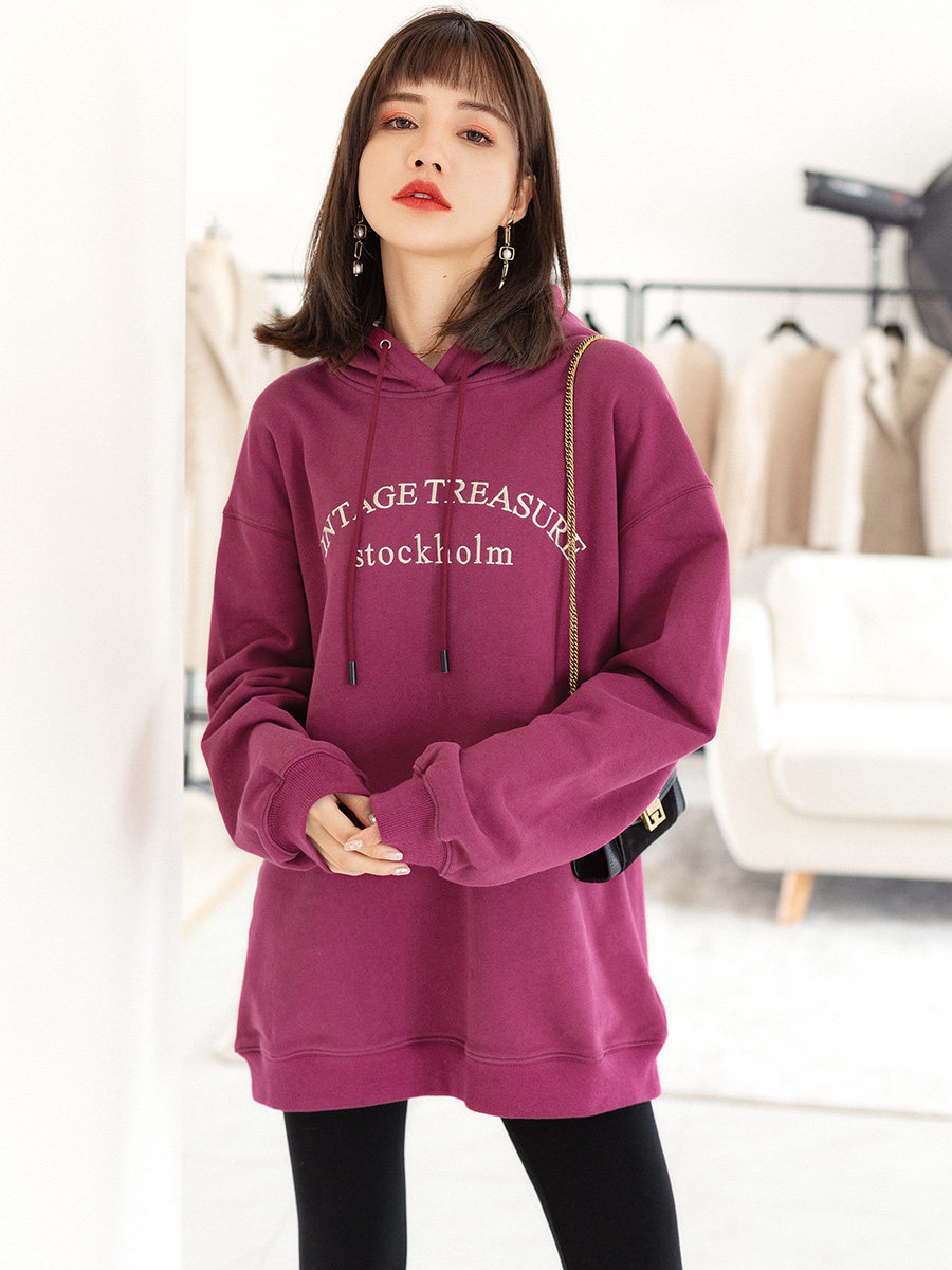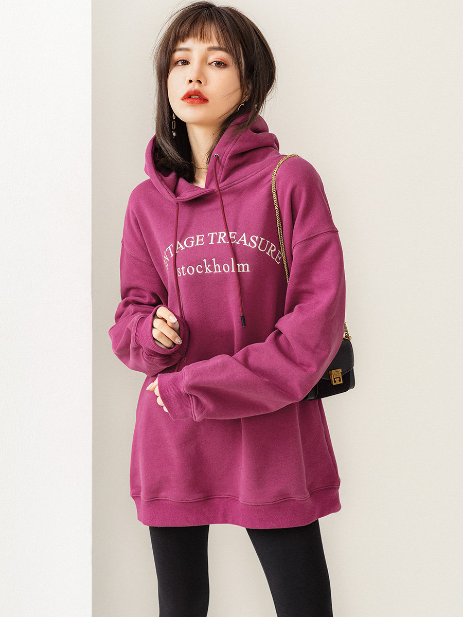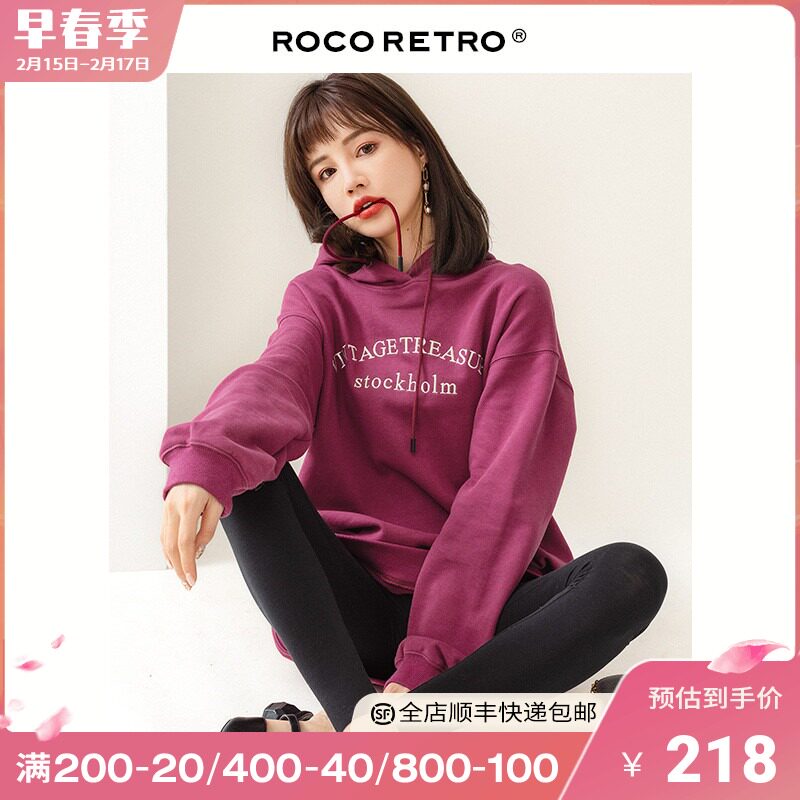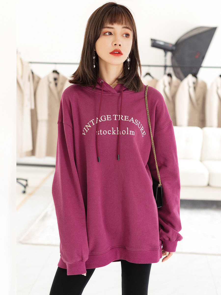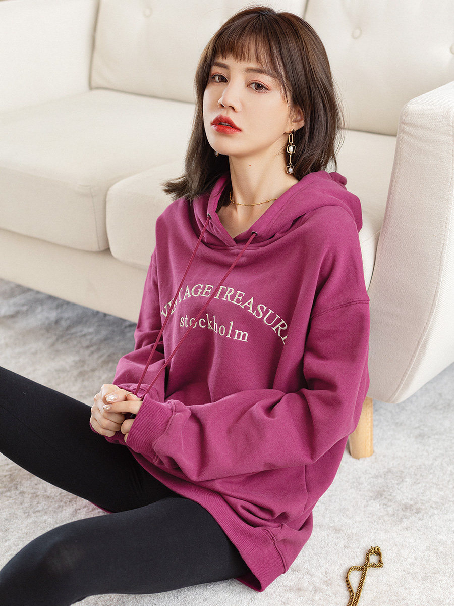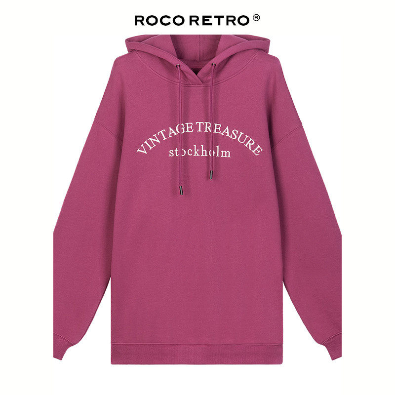 Tide, ретро сиреневая осенняя толстовка с капюшоном, свободный крой, 2023