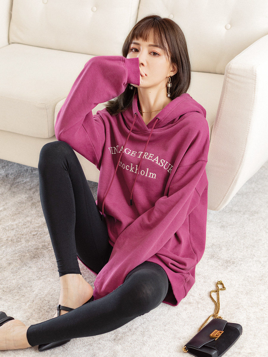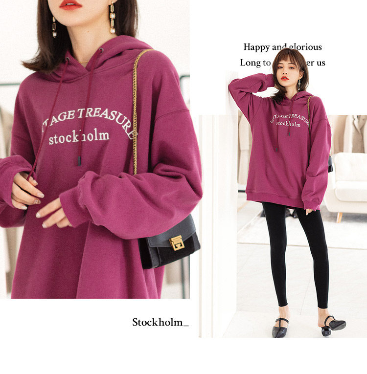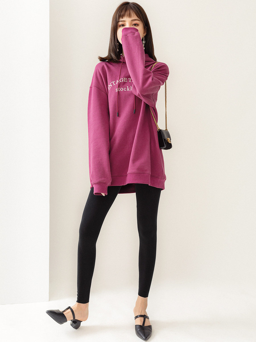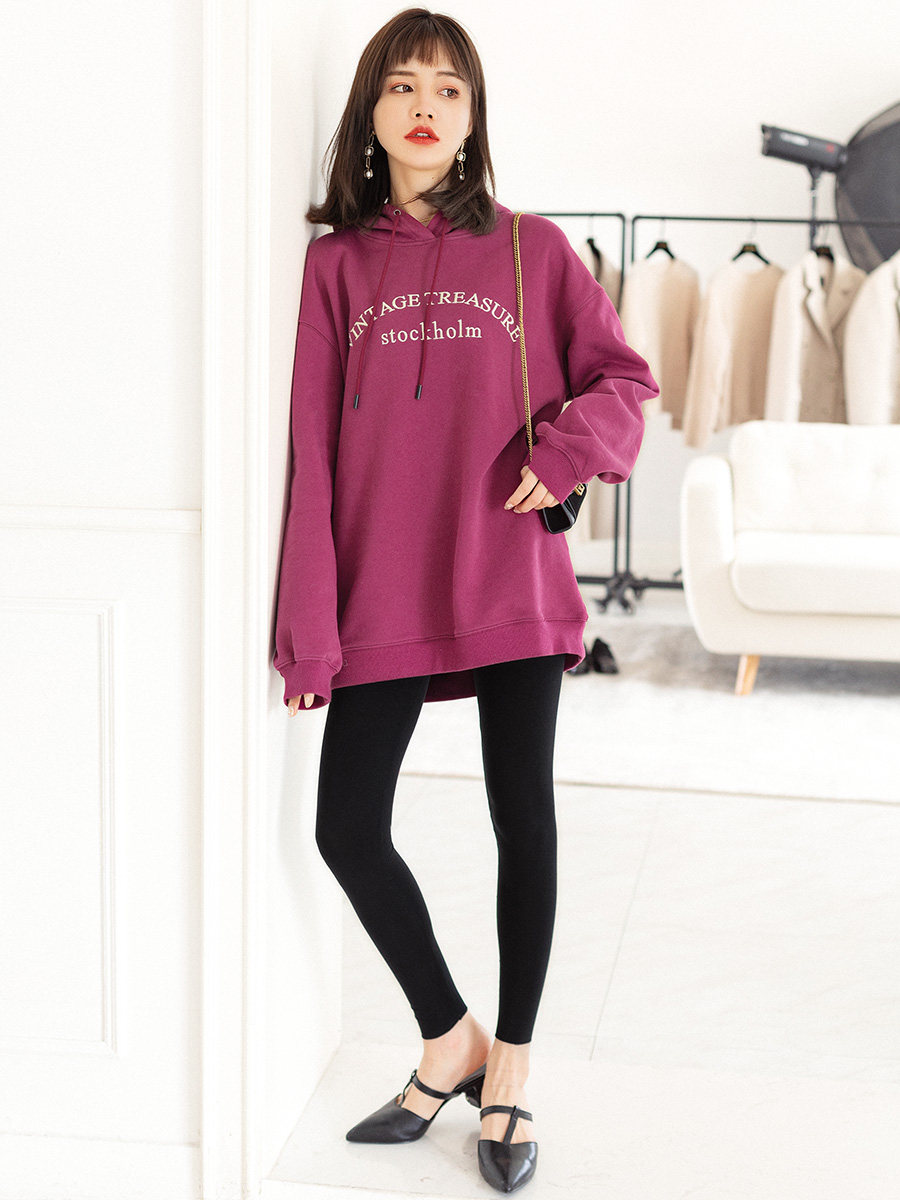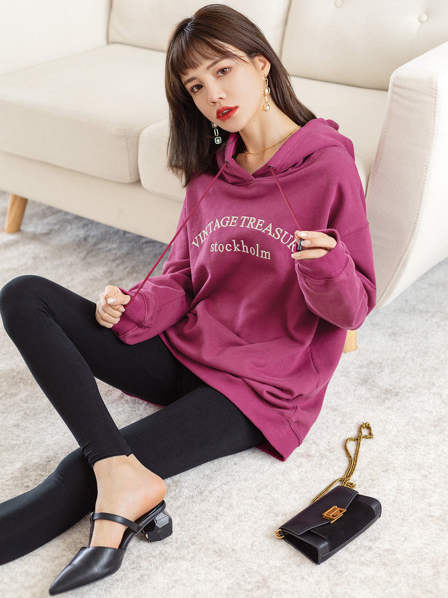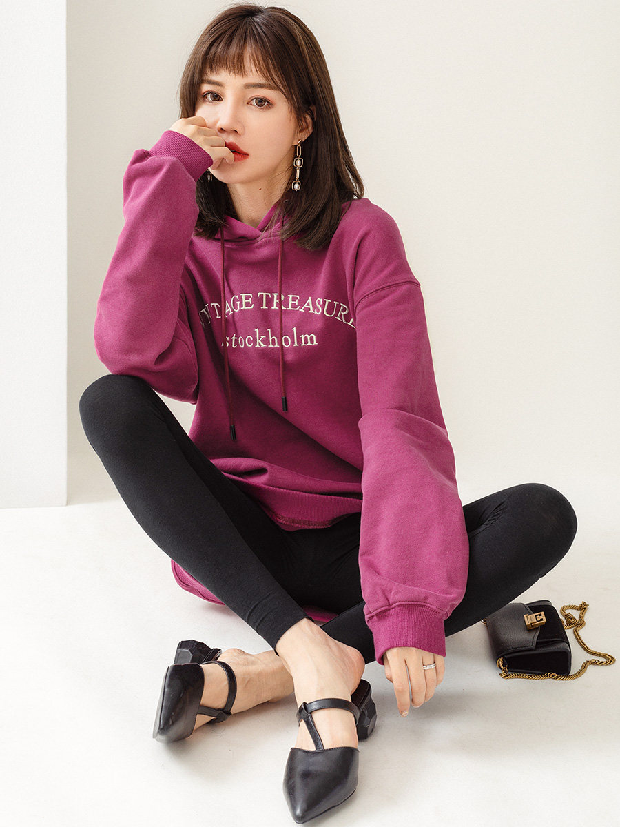 Tide, ретро сиреневая осенняя толстовка с капюшоном, свободный крой, 2023