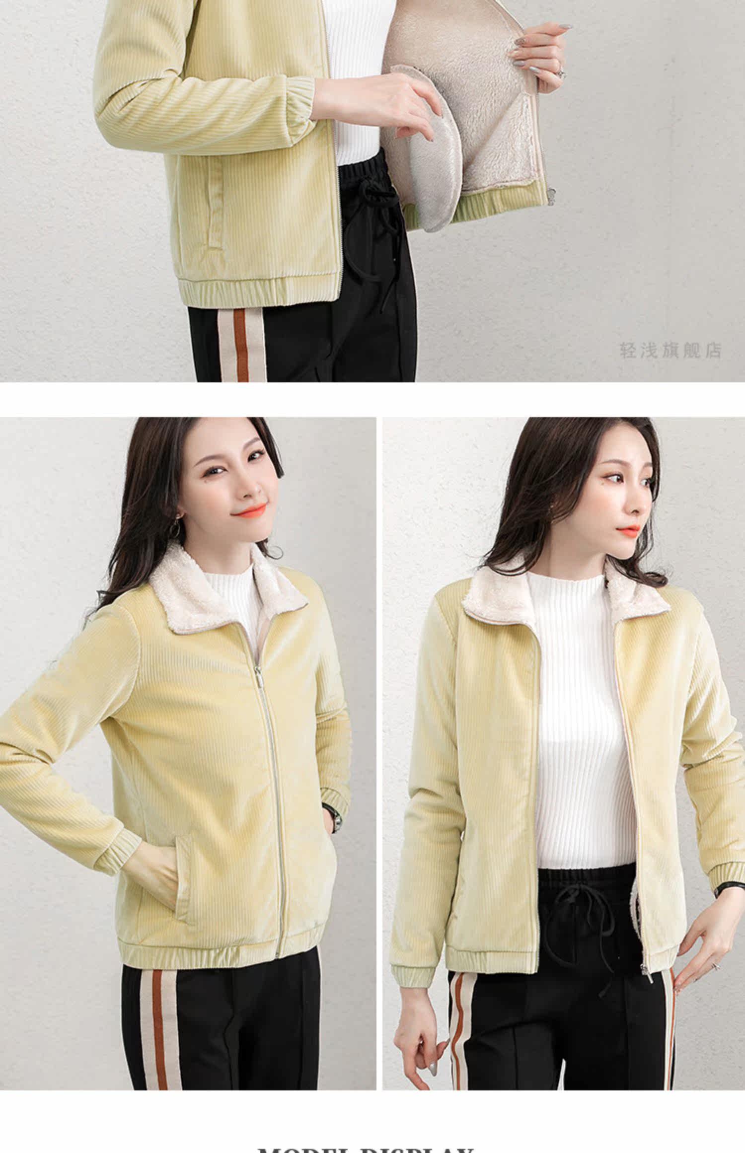 Куртка, демисезонная утепленная толстовка, бархатный кардиган с молнией, в корейском стиле