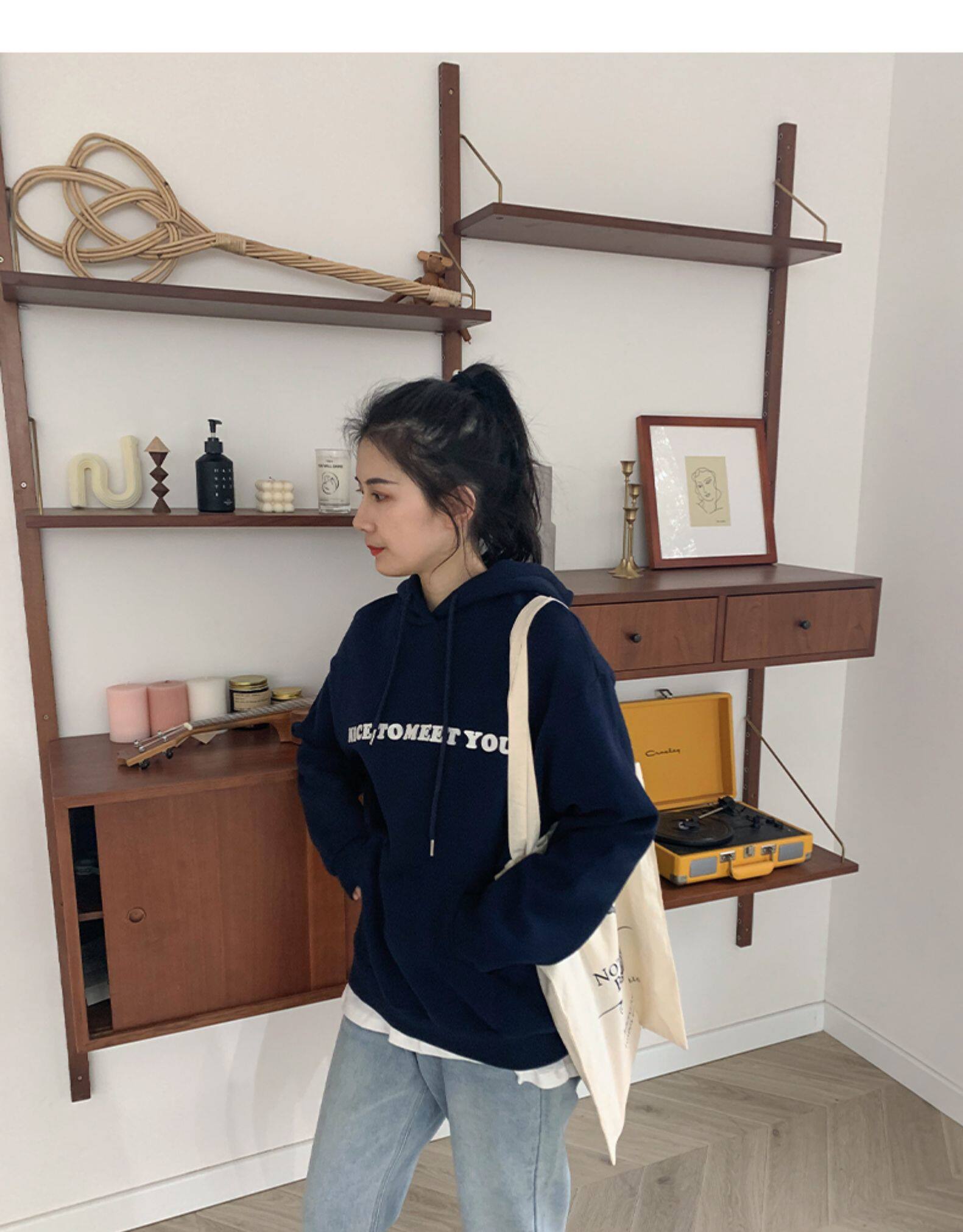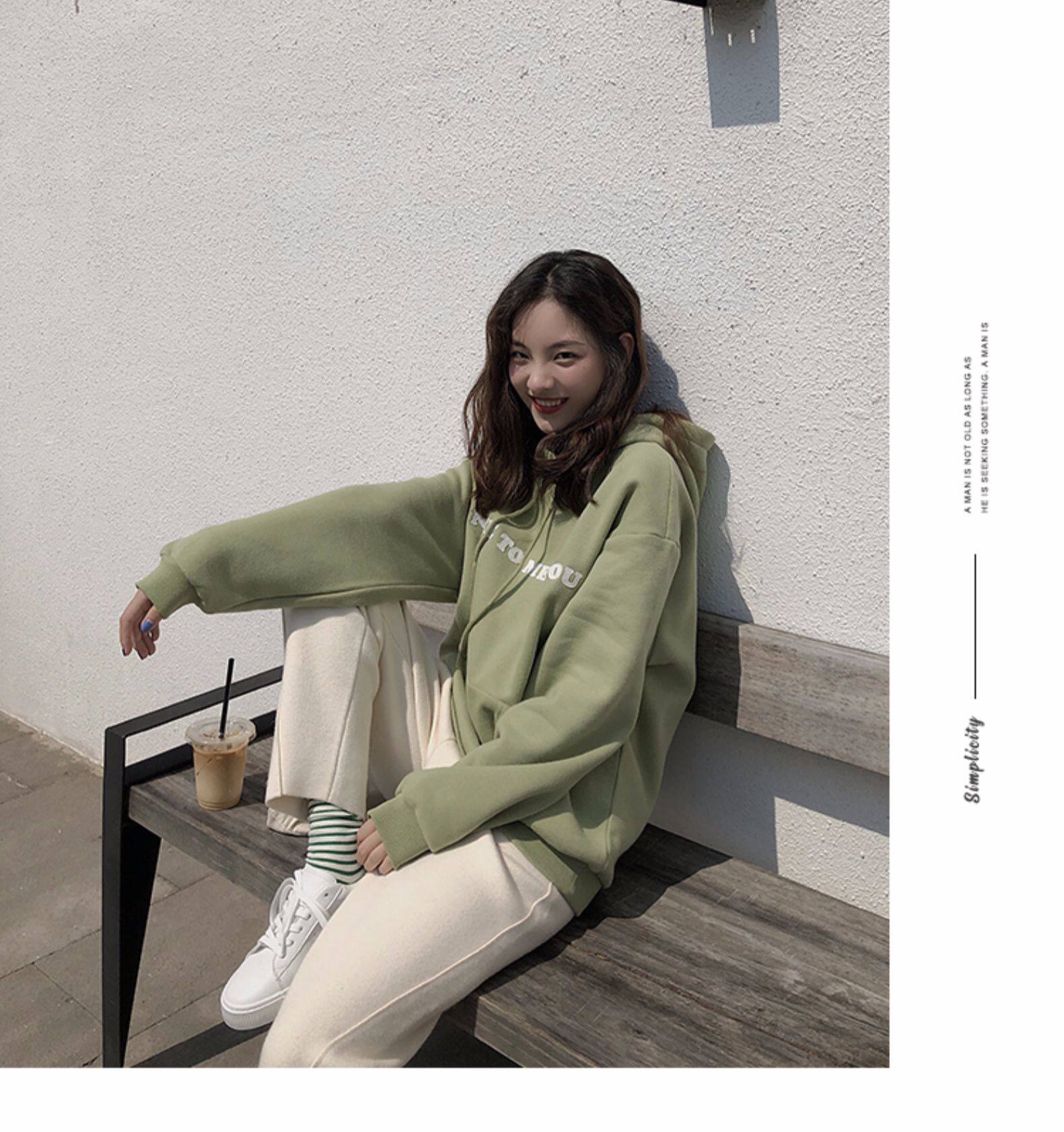 Синяя бархатная утепленная толстовка, в корейском стиле, свободный крой, длина миди