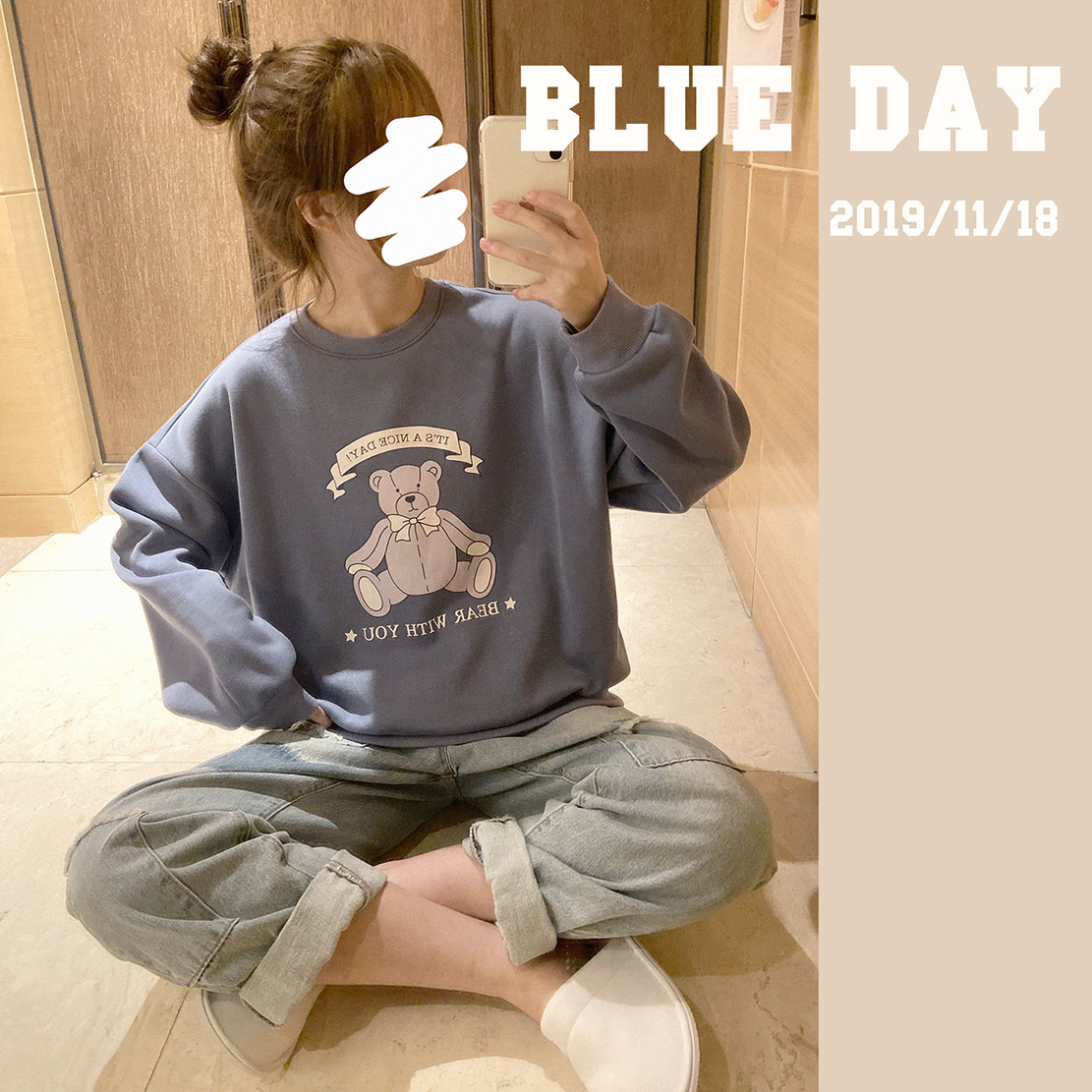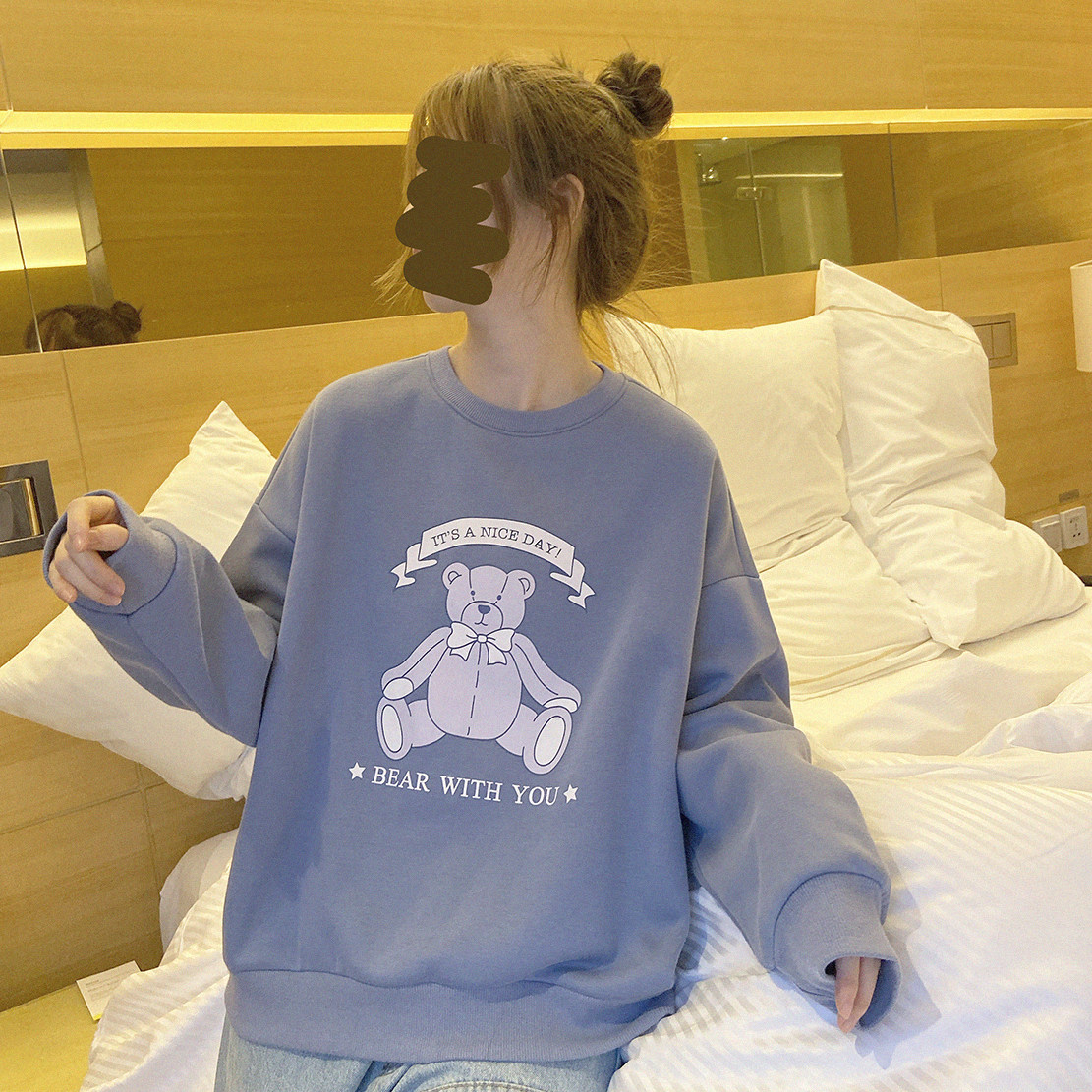 Оригинальная милая ретро игрушка, утепленная толстовка, с медвежатами, свободный крой