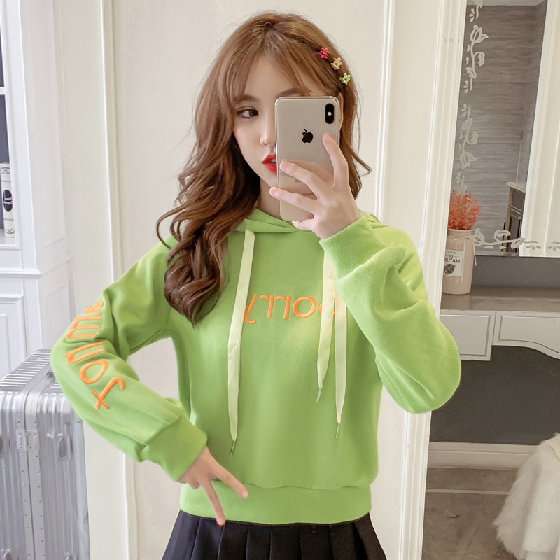 Короткая осенняя толстовка с капюшоном, зеленый лонгслив, коллекция 2021, оверсайз, с вышивкой