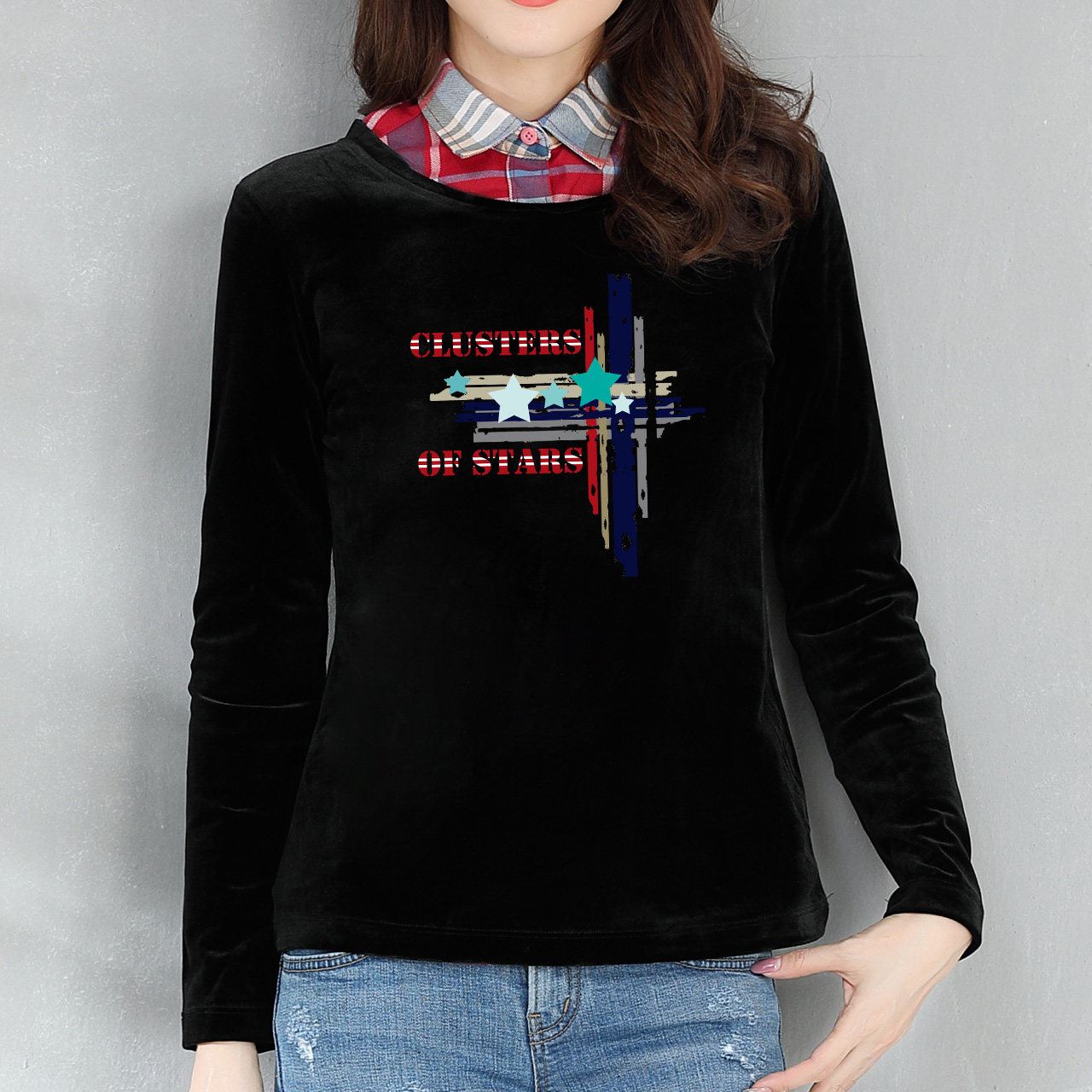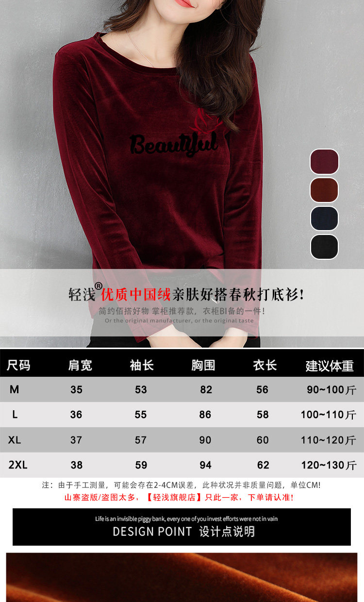 轻浅 Базовый приятный телу демисезонный бархатный лонгслив, футболка, 2020, оверсайз, в корейском стиле