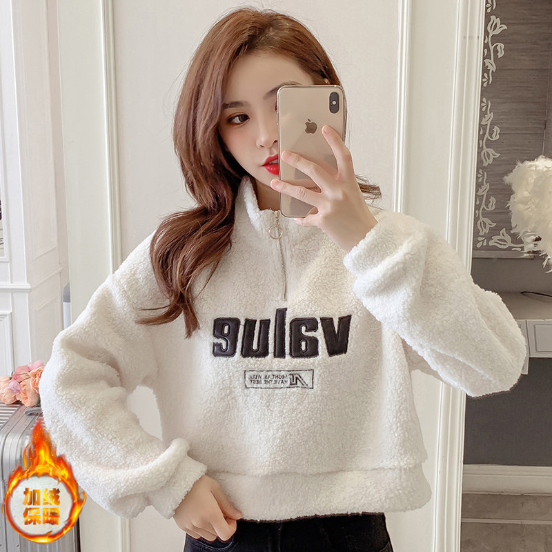 Короткая демисезонная толстовка, бархатная куртка с молнией, коллекция 2021, оверсайз, в корейском стиле, на молнии, высокая талия, увеличенная толщина