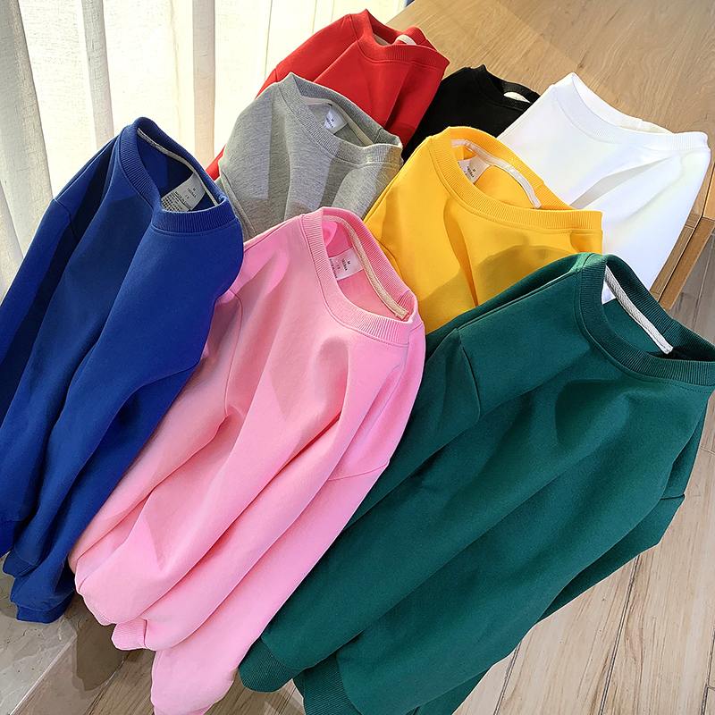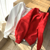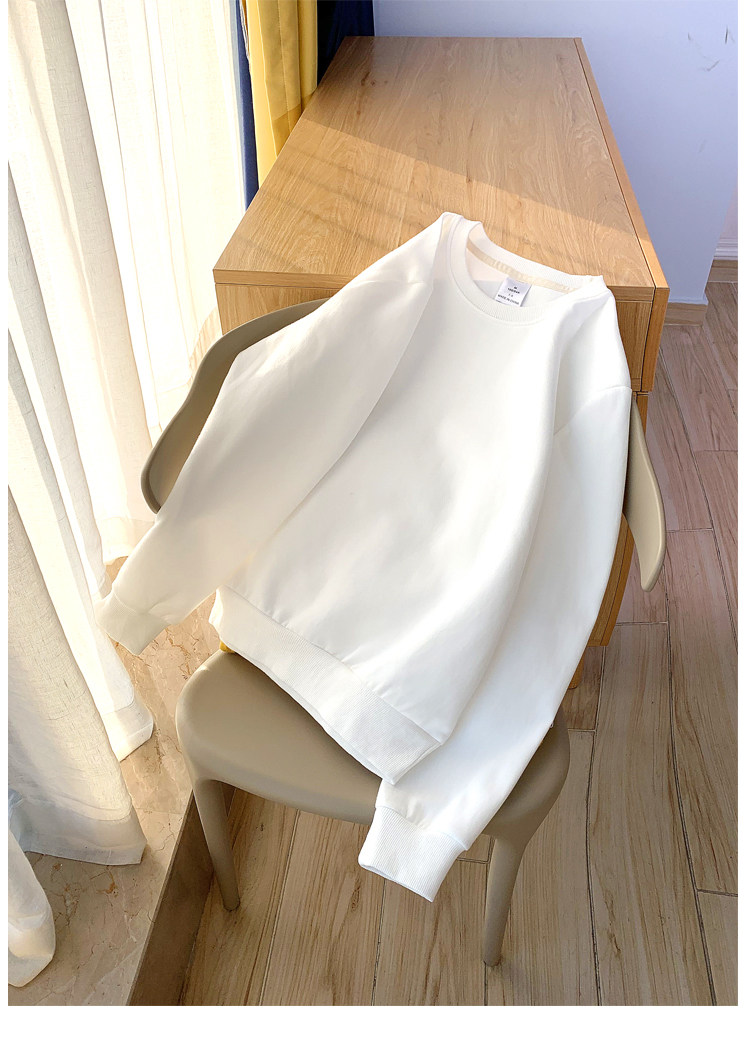 Хлопковый тонкий осенний белый брендовый свитшот с круглым воротником, 2020, оверсайз