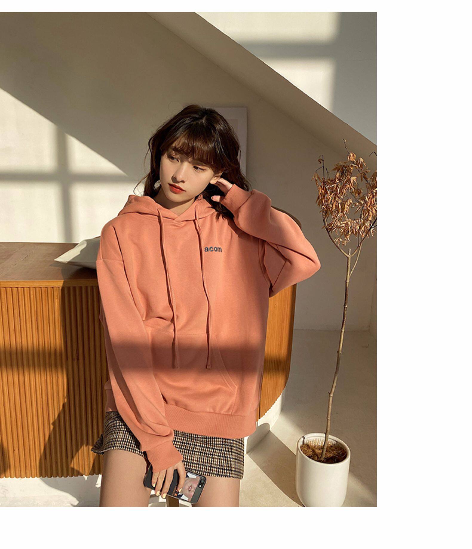 Оранжевая брендовая толстовка с капюшоном, в корейском стиле, популярно в интернете, с вышивкой, коллекция 2021