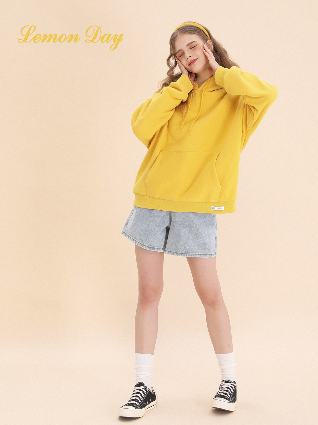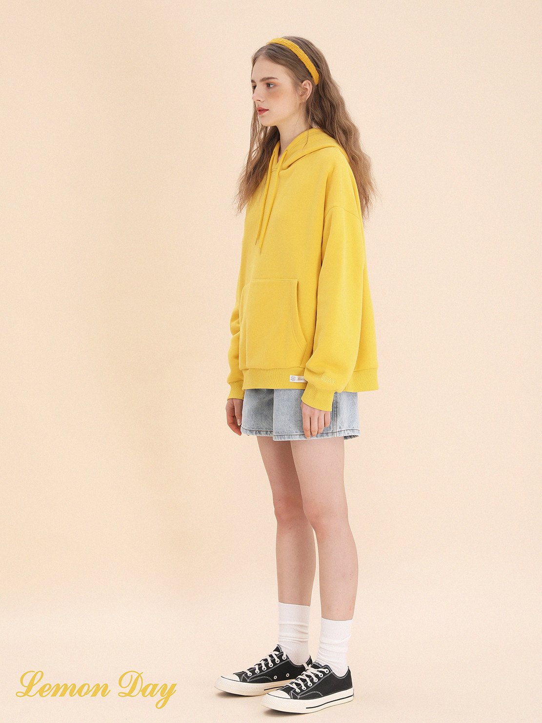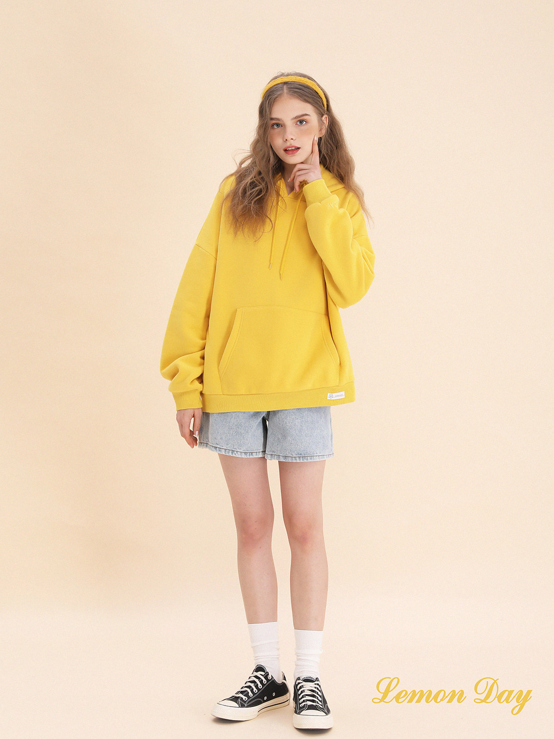 Лимонная базовая желтая толстовка с капюшоном, утепленная толстовка, с вышивкой, свободный крой