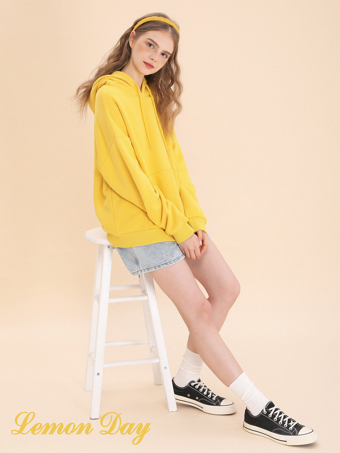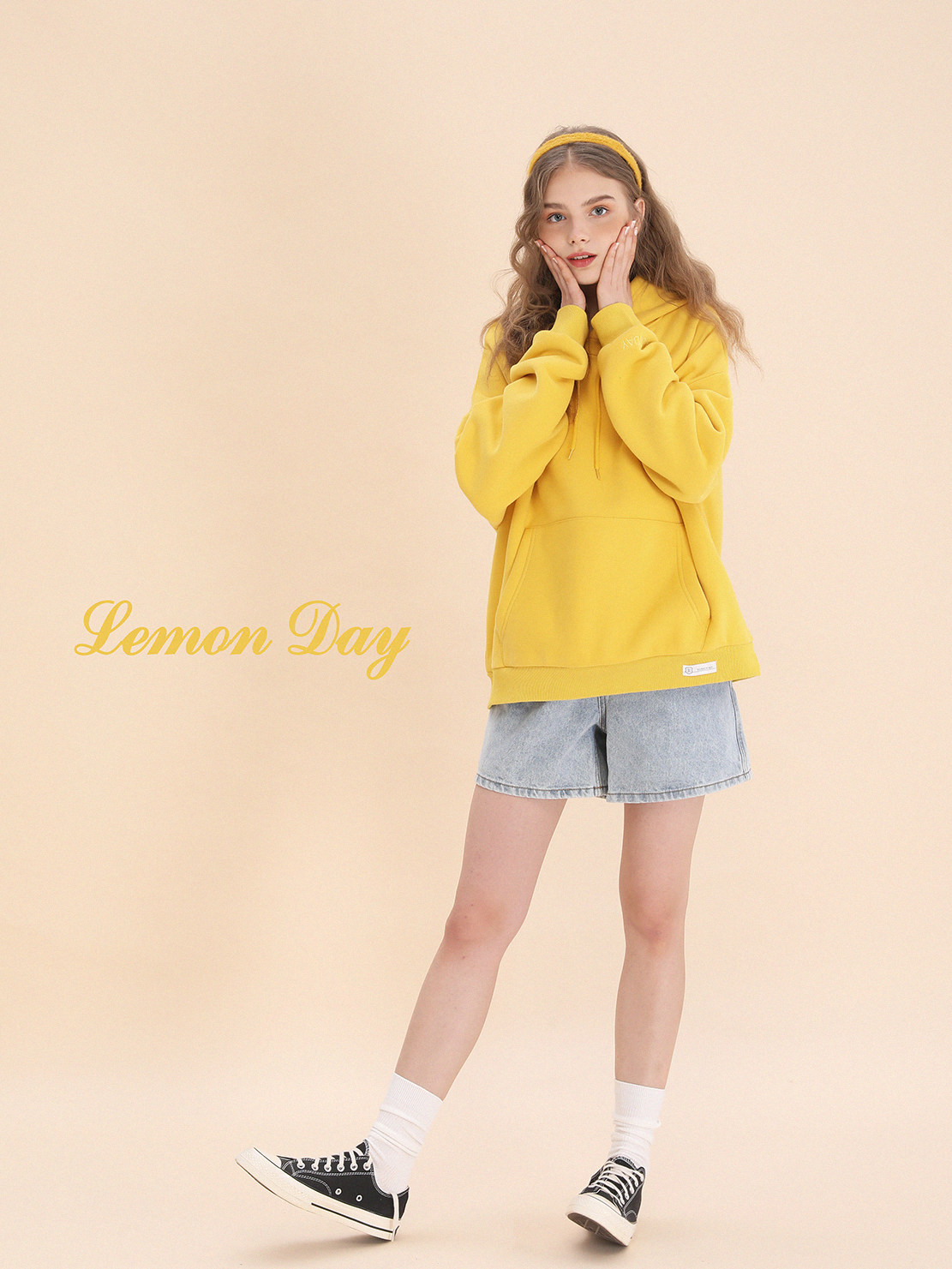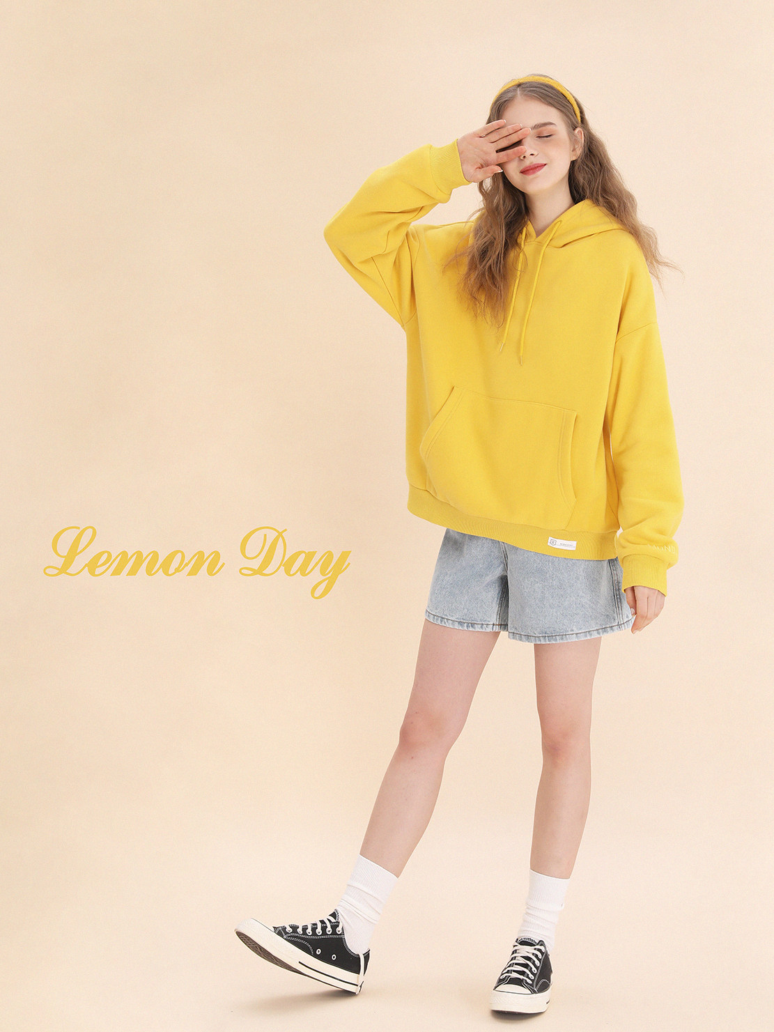 Лимонная базовая желтая толстовка с капюшоном, утепленная толстовка, с вышивкой, свободный крой