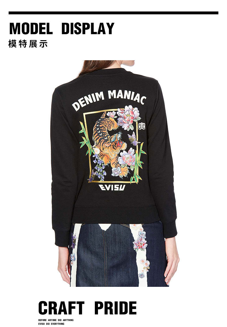 Женская толстовка EVISU 20SS с тигровым принтом и вышитым логотипом 2ESHTW0SW342XX