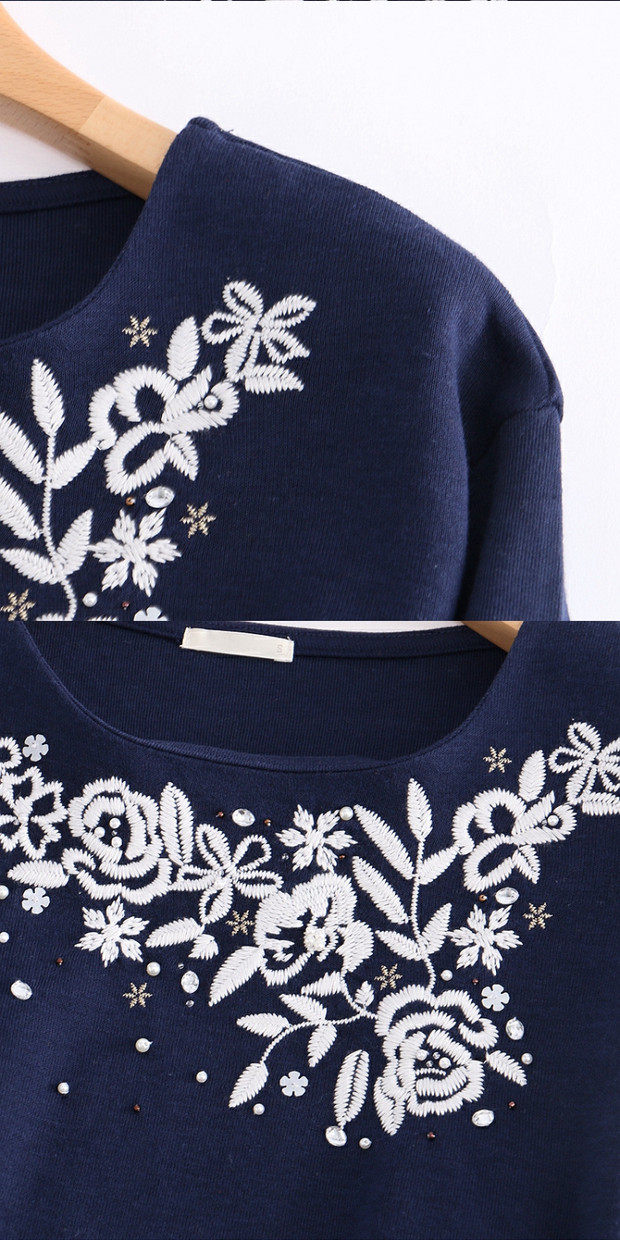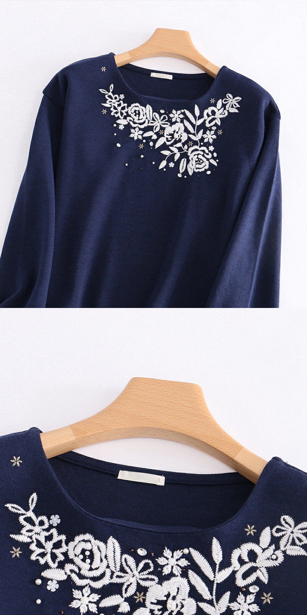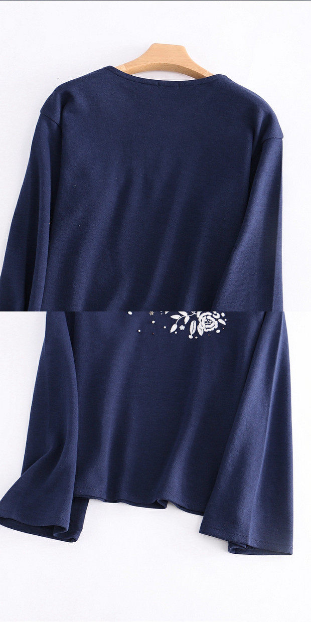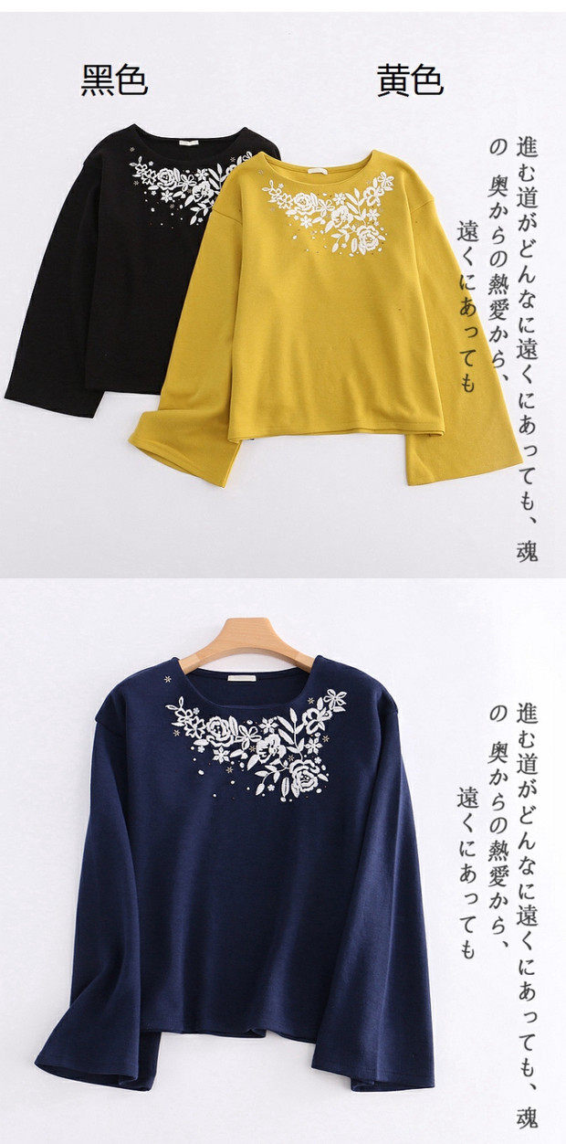 Весенняя модная толстовка, мегафон с круглым воротником, универсальный ретро лонгслив, с вышивкой, тренд сезона, облегающий крой