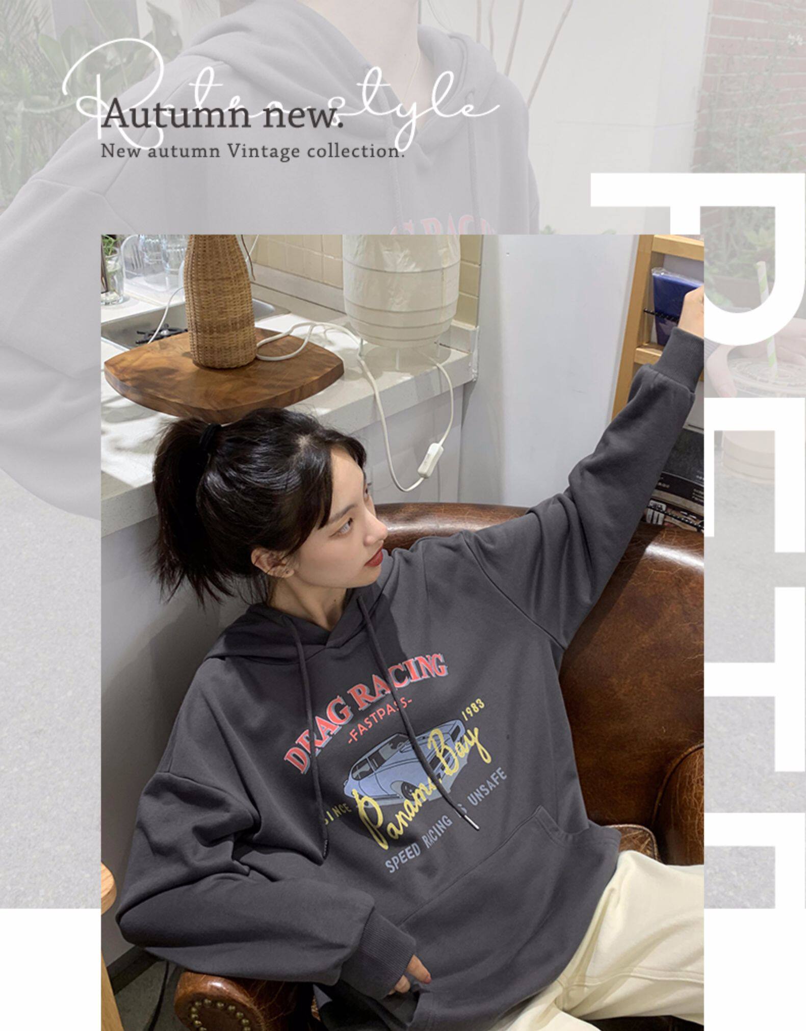 Tide, ретро толстовка с капюшоном, в корейском стиле, популярно в интернете, оверсайз