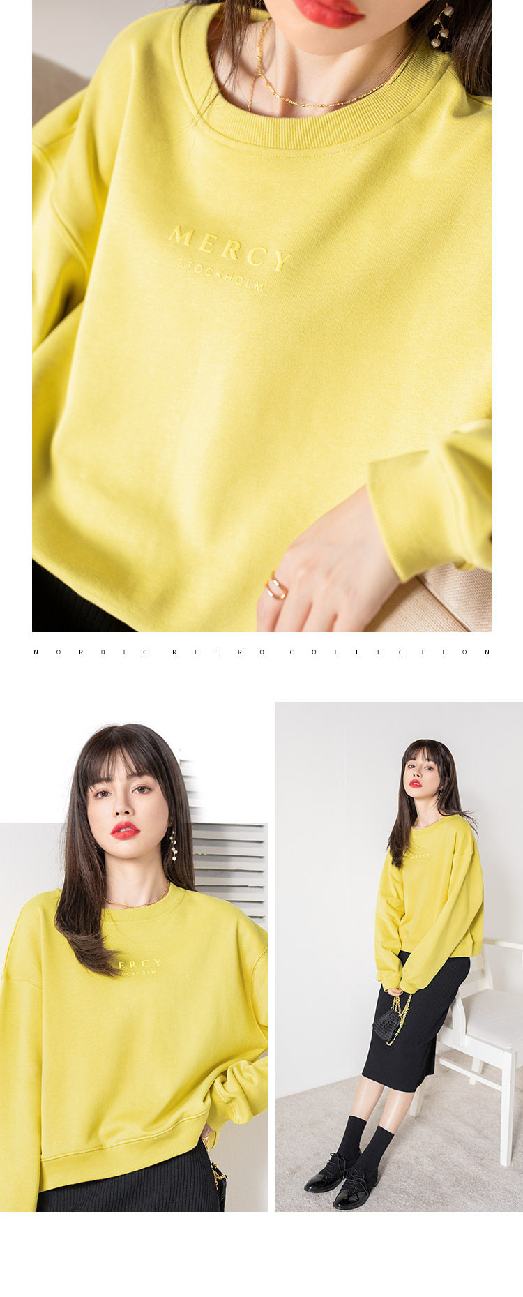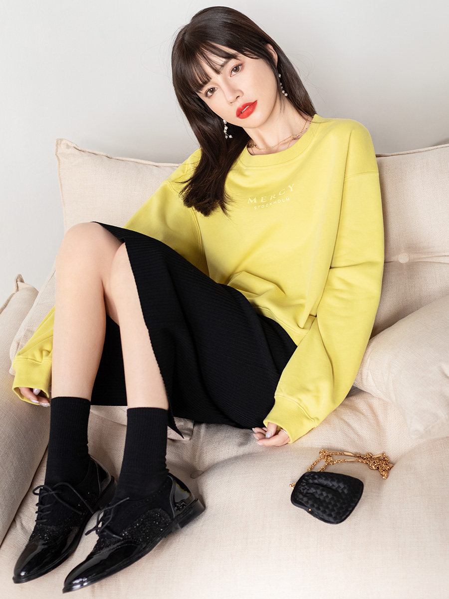 Tide, желтый осенний свитшот, свободный крой