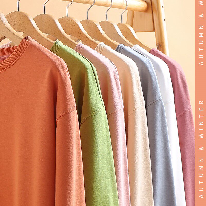 艾米恋 Розовый свитшот с круглым воротником, демисезонный лонгслив, 2020, в корейском стиле