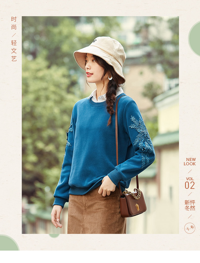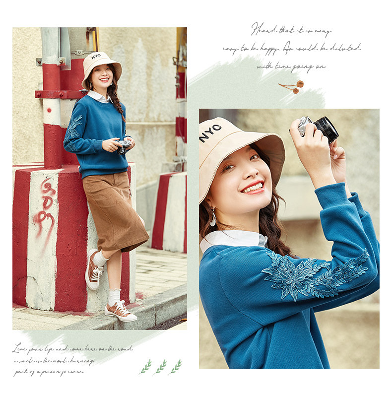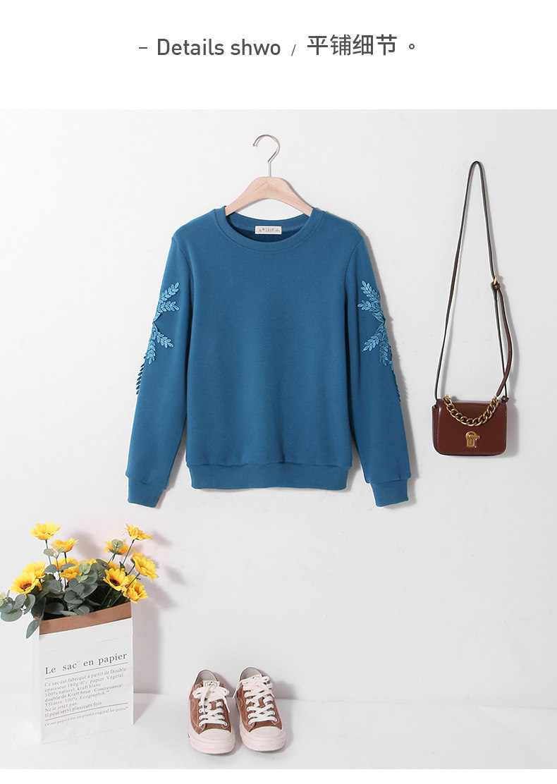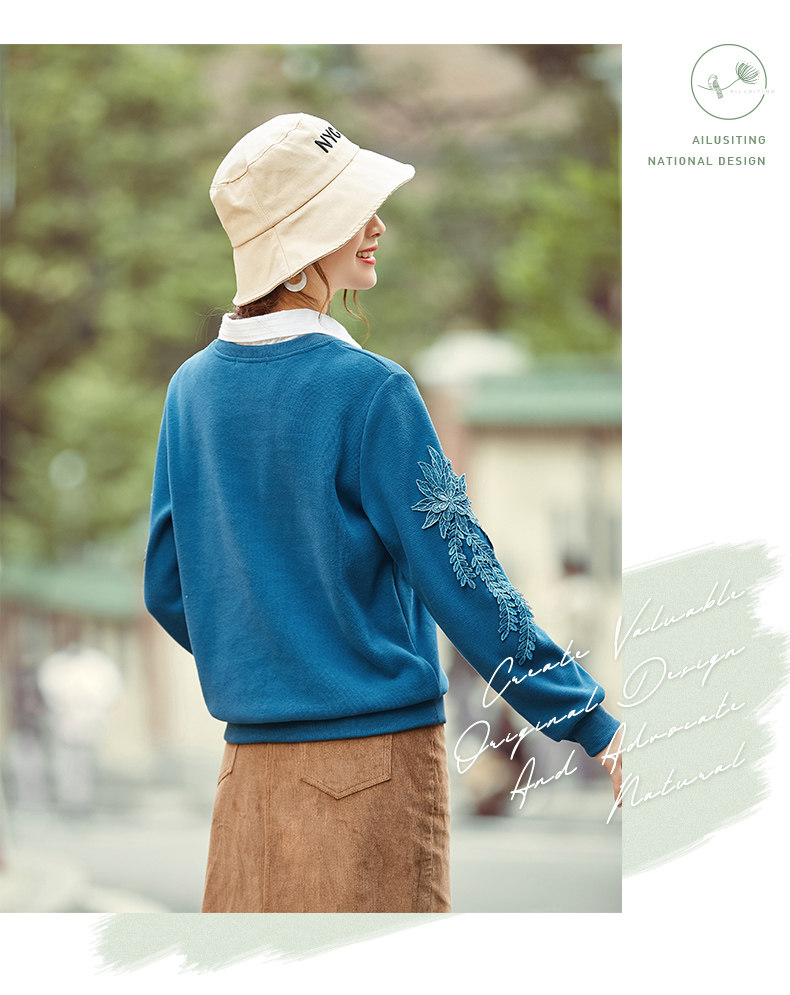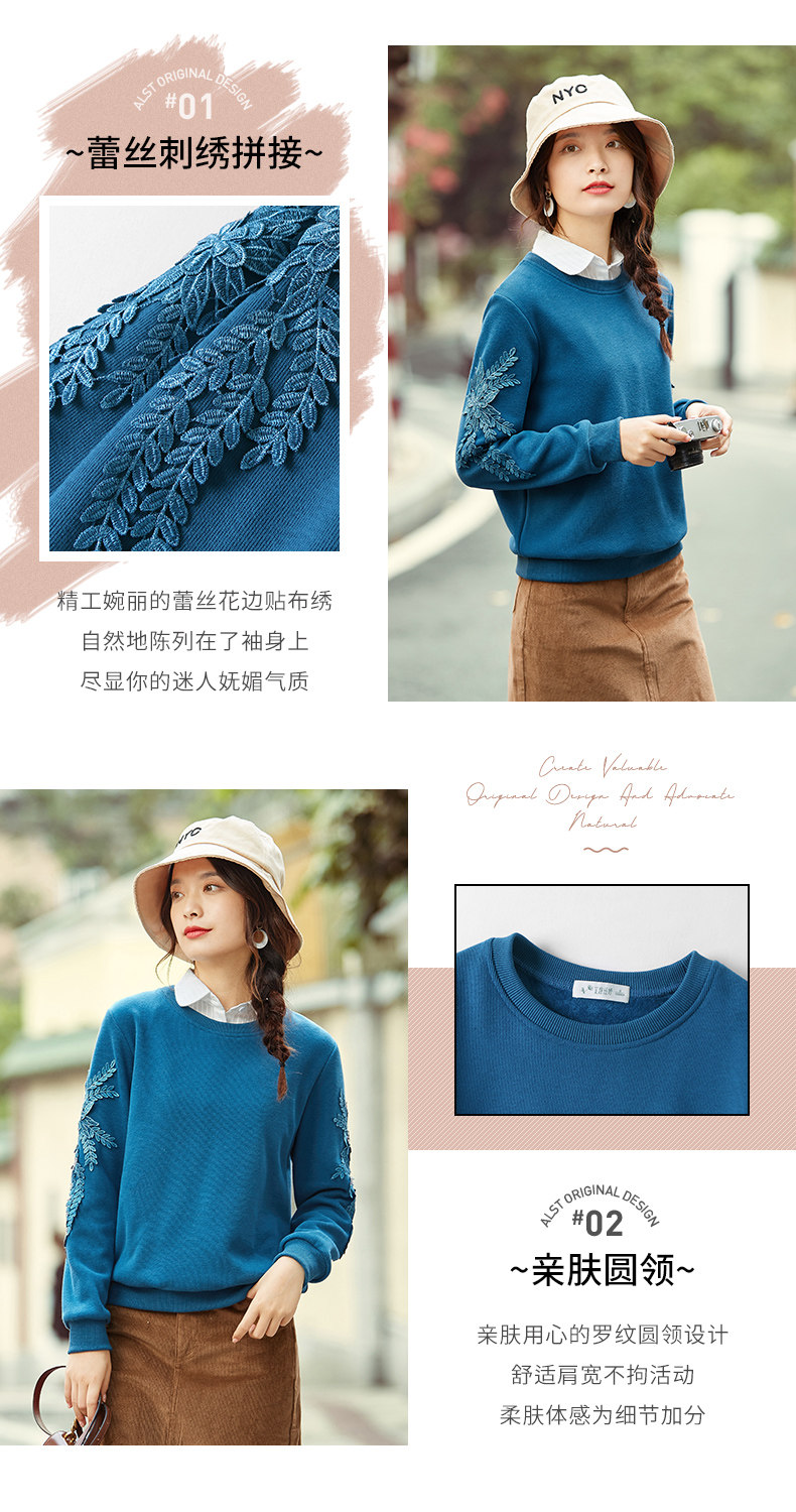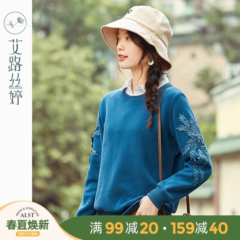 艾路丝婷 Флисовый свитшот, базовый приятный телу пуховик, 2020, свободный крой, с вышивкой