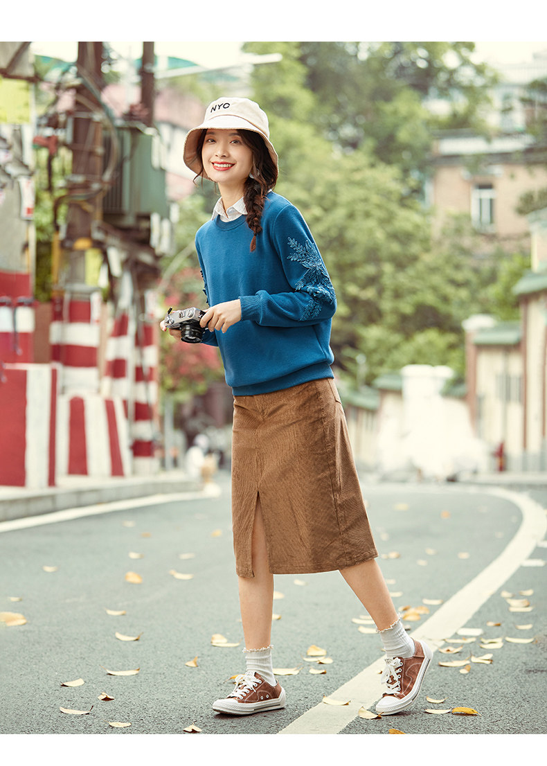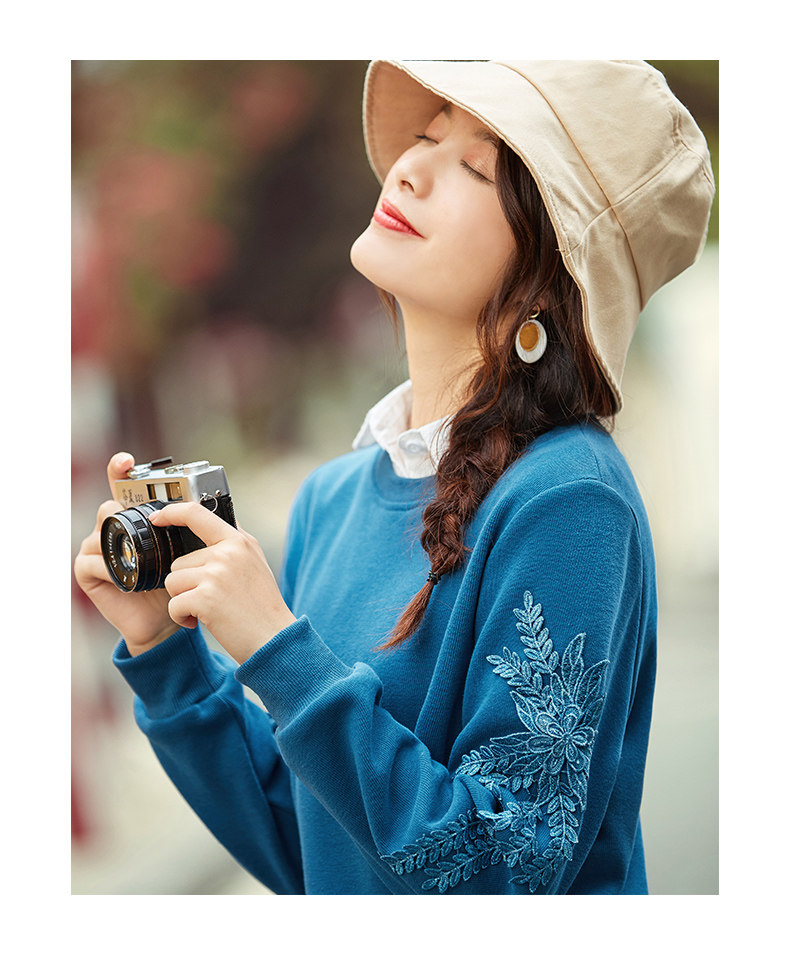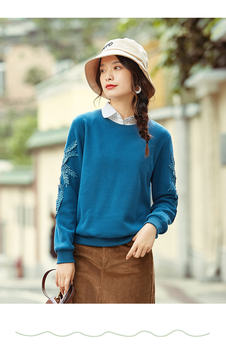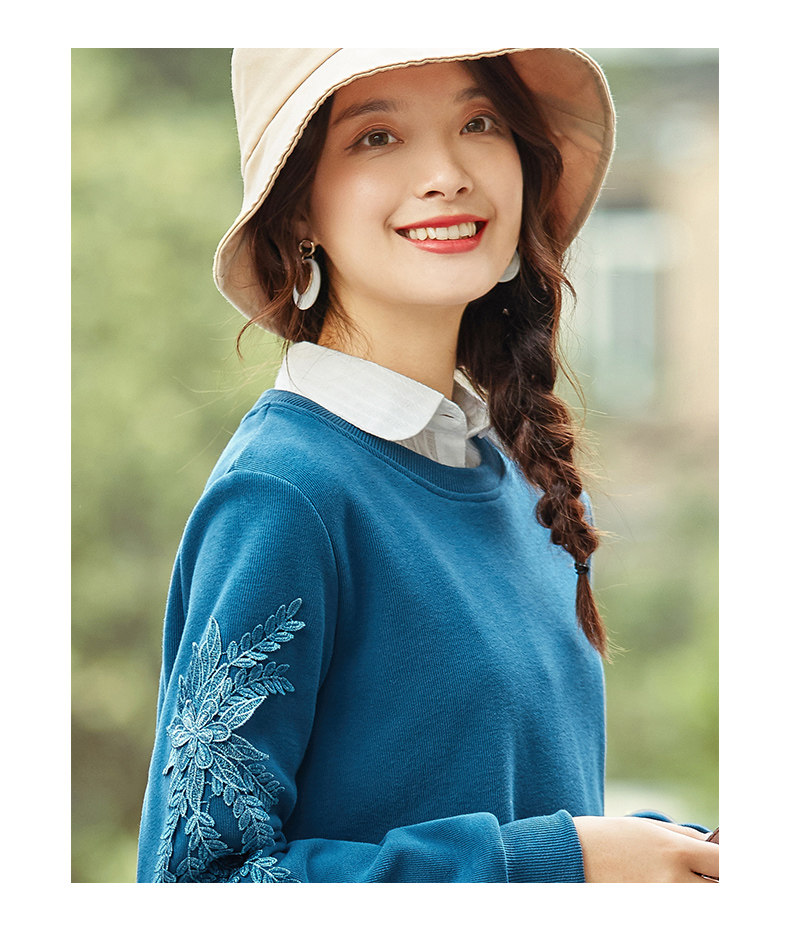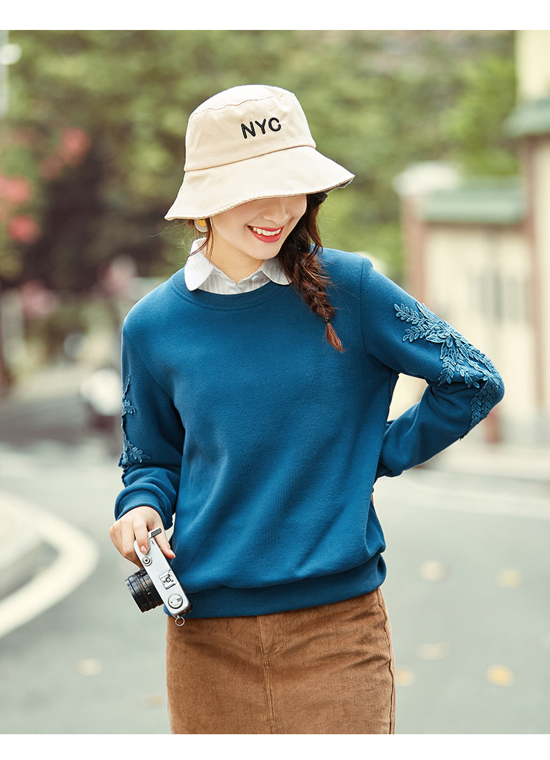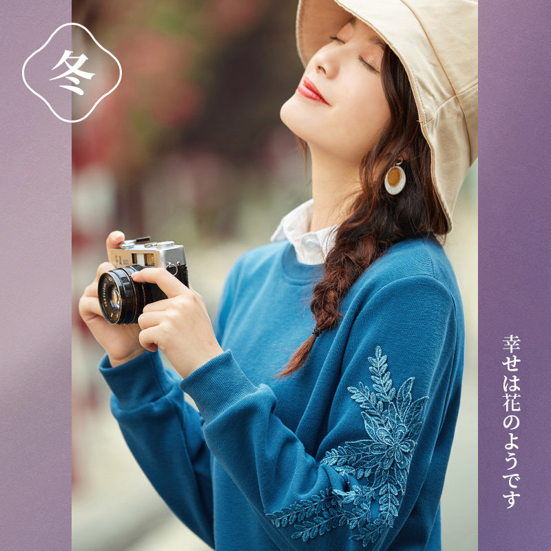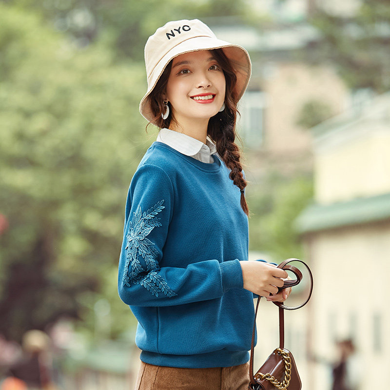艾路丝婷 Флисовый свитшот, базовый приятный телу пуховик, 2020, свободный крой, с вышивкой