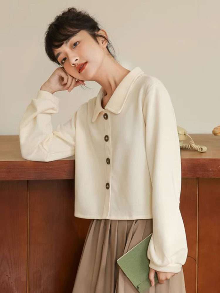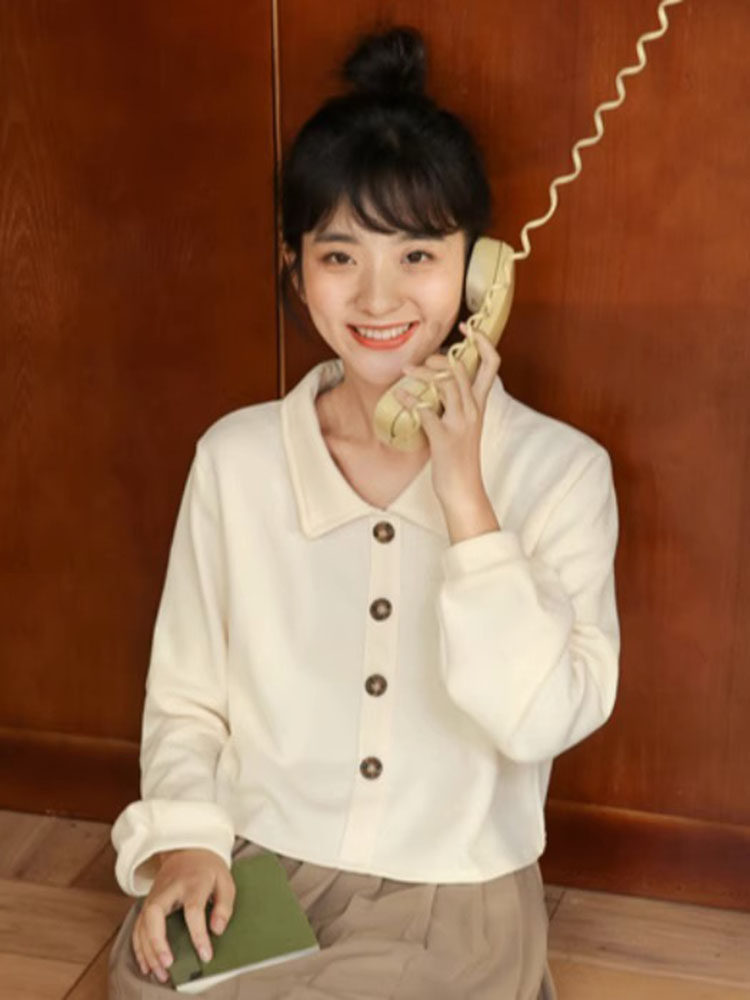 Сливочная осенняя толстовка, японская белая куртка, в корейском стиле