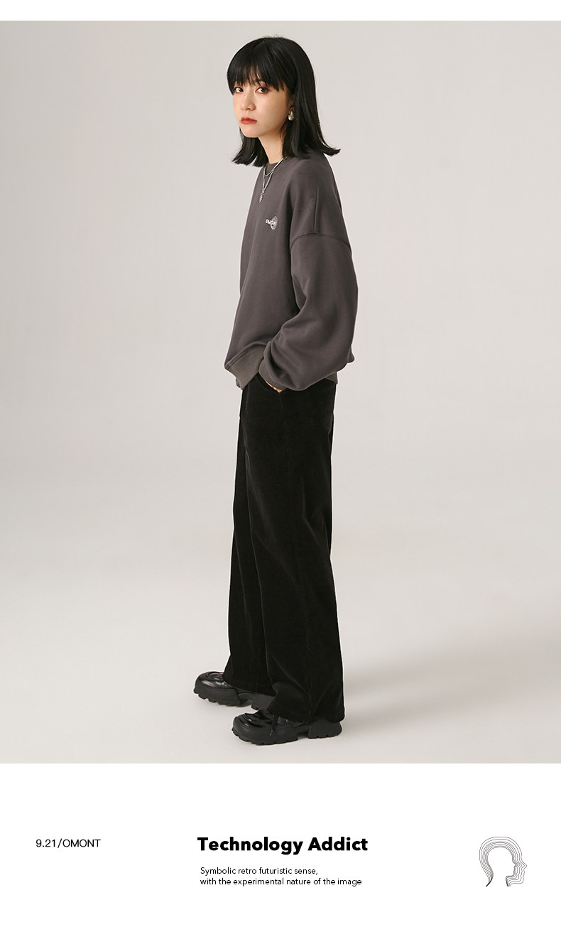 omont Ретро лонгслив, осенняя толстовка с круглым воротником, оверсайз, с вышивкой, на шнурках, 2020