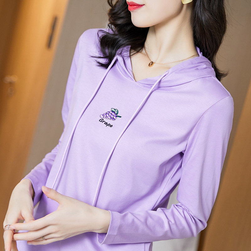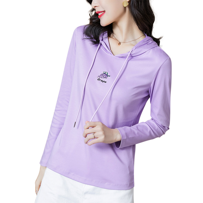 Тонкая хлопковая сиреневая осенняя толстовка с капюшоном, хлопковый лонгслив, с вышивкой, коллекция 2022