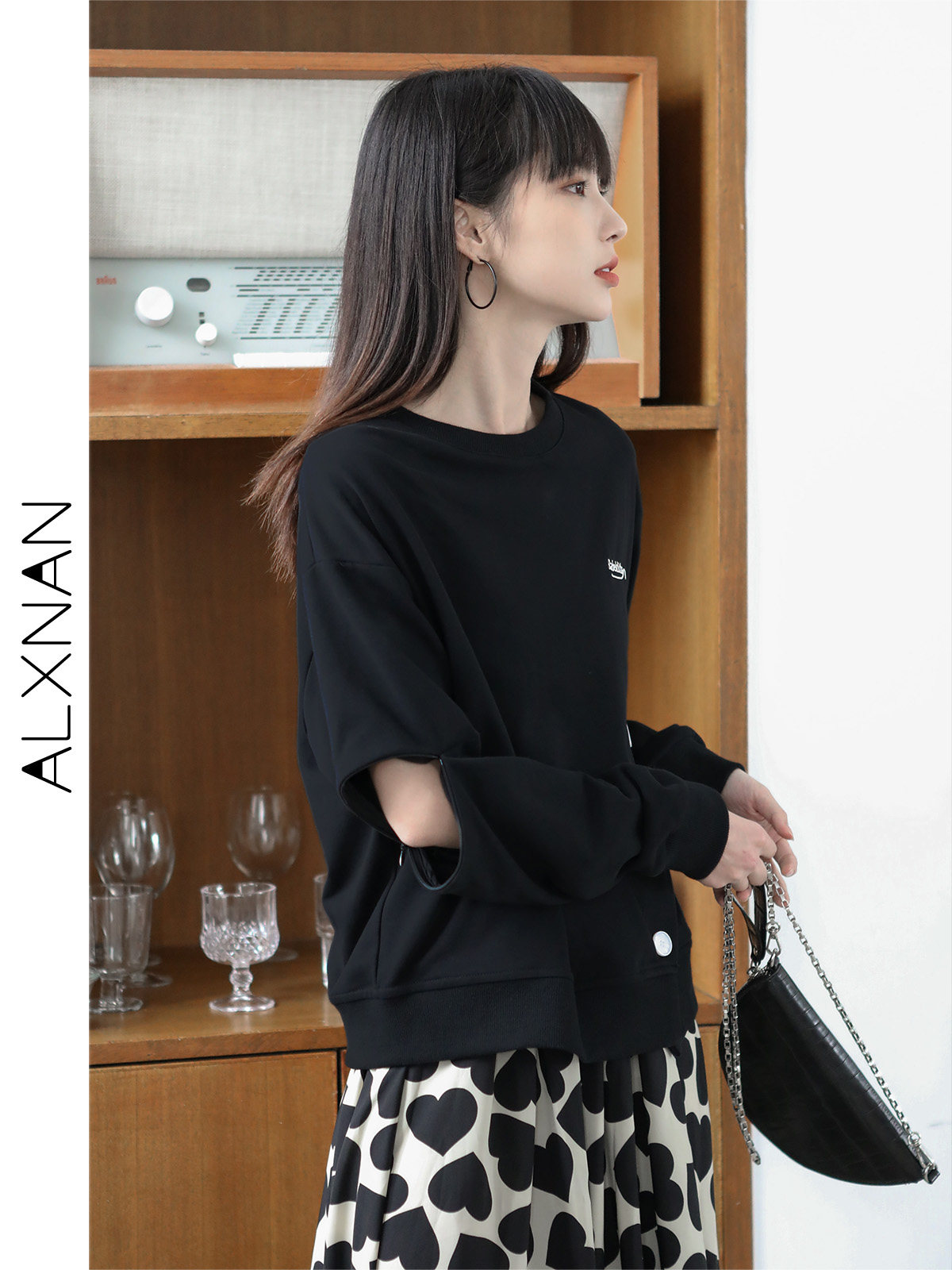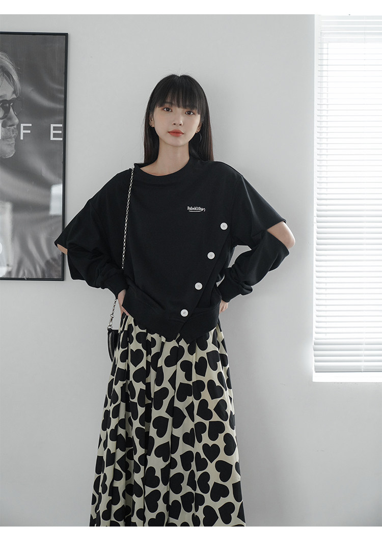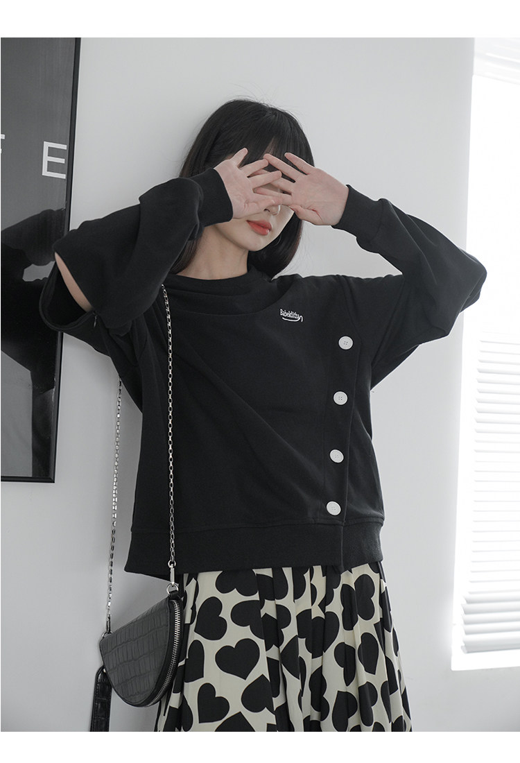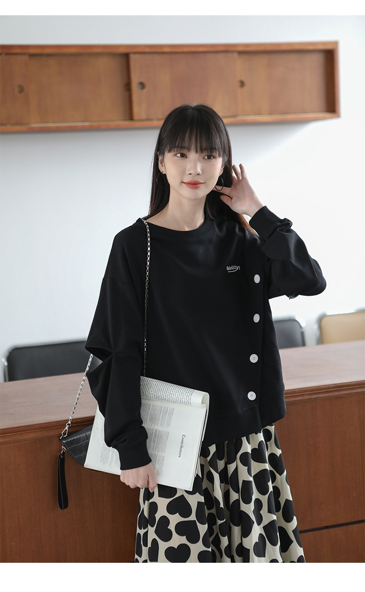 Черная дизайнерская толстовка с круглым воротником, коллекция 2022, тренд сезона